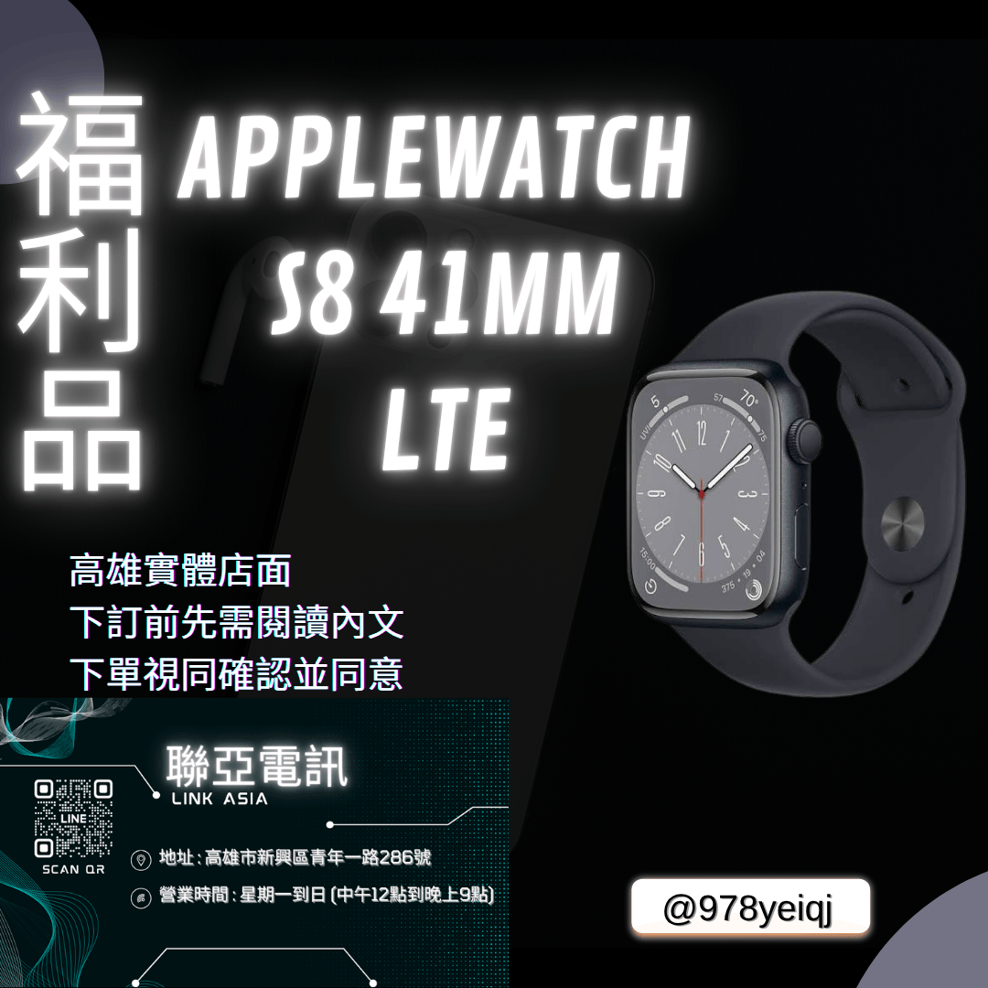 Apple Watch S8 41mm LTE 下訂前請先私訊官方Line :@978yeiqj 庫存全新福利品,僅去年開機充電,無使用過,功能正常全機無傷