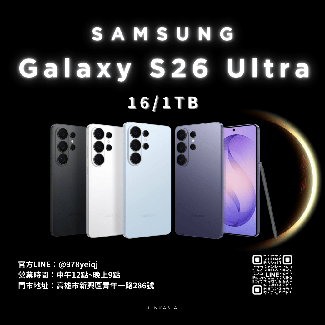 SAMSUNG Galaxy S26 Ultra 12GB/512GB 遠信額度可直接使用無需審核 下單後請務必+LINE 為您安排快速審核&回報審核進度↓↓↓ LINE搜尋電話:0986541561 ------------------------------------------------------ 下單後請+LINE聯繫,可搜尋電話:0986541561 手機.平板.筆電週邊品牌眾多, 若賣場無您欲購買型號, 可先傳訊或來電詢問, 並確認現貨顏色後, 可為您新增專屬賣場, 謝謝您 LINE ID: jptattoo TEL: 0986541561