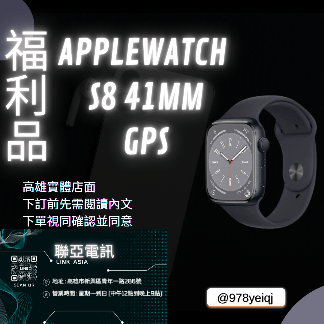 Apple Watch S8 41mm GPS 下訂前請先私訊官方Line :@978yeiqj 庫存全新福利品,僅去年開機充電,無使用過,功能正常全機無傷