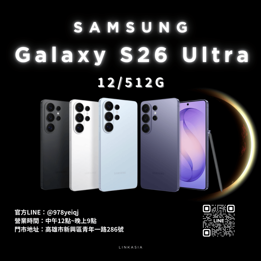 全新Samaung S26 Ultra 12/512G 下訂單前請先私訊官方Line :@978yeiqj ⚡ S26 Ultra 升級重點 ✔ 新一代處理器|效能更強 ✔ 60W 快充|充電速度更快 ✔ AI 功能升級 ✔ Privacy Display 防窺螢幕