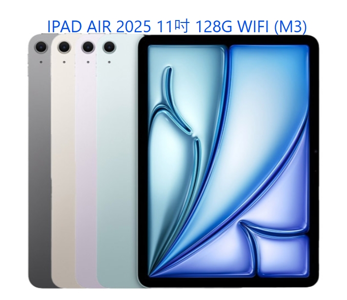 Apple 於 2025 年 3 月推出了搭載 M3 晶片 的全新 iPad Air 11 吋 (2025),其 Wi-Fi 版 128GB 的官方起售價為 NT$19,900。這款機型主打效能升級,並全面支援 Apple Intelligence 功能。 晶片效能:搭載 Apple M3 晶片,配備 8 核心 CPU 與 9 核心 GPU,效能較前代大幅提升,適合多工作業與專業創作。 顯示螢幕:11 吋 Liquid Retina 顯示器,解析度為 2360 x 1640 (264 ppi),亮度達 500 尼特,具備 P3 廣色域與原彩顯示。 相機系統:1200 萬像素廣角後置相機與 橫向 1200 萬像素超廣角前置相機,支援人物居中 (Center Stage) 功能。 配件支援:全面支援 Apple Pencil Pro、Apple Pencil (USB-C) 以及專為其設計的巧控鍵盤。 無線連接:支援 Wi-Fi 6E 與藍牙 5.3,提供更高速的連網體驗。