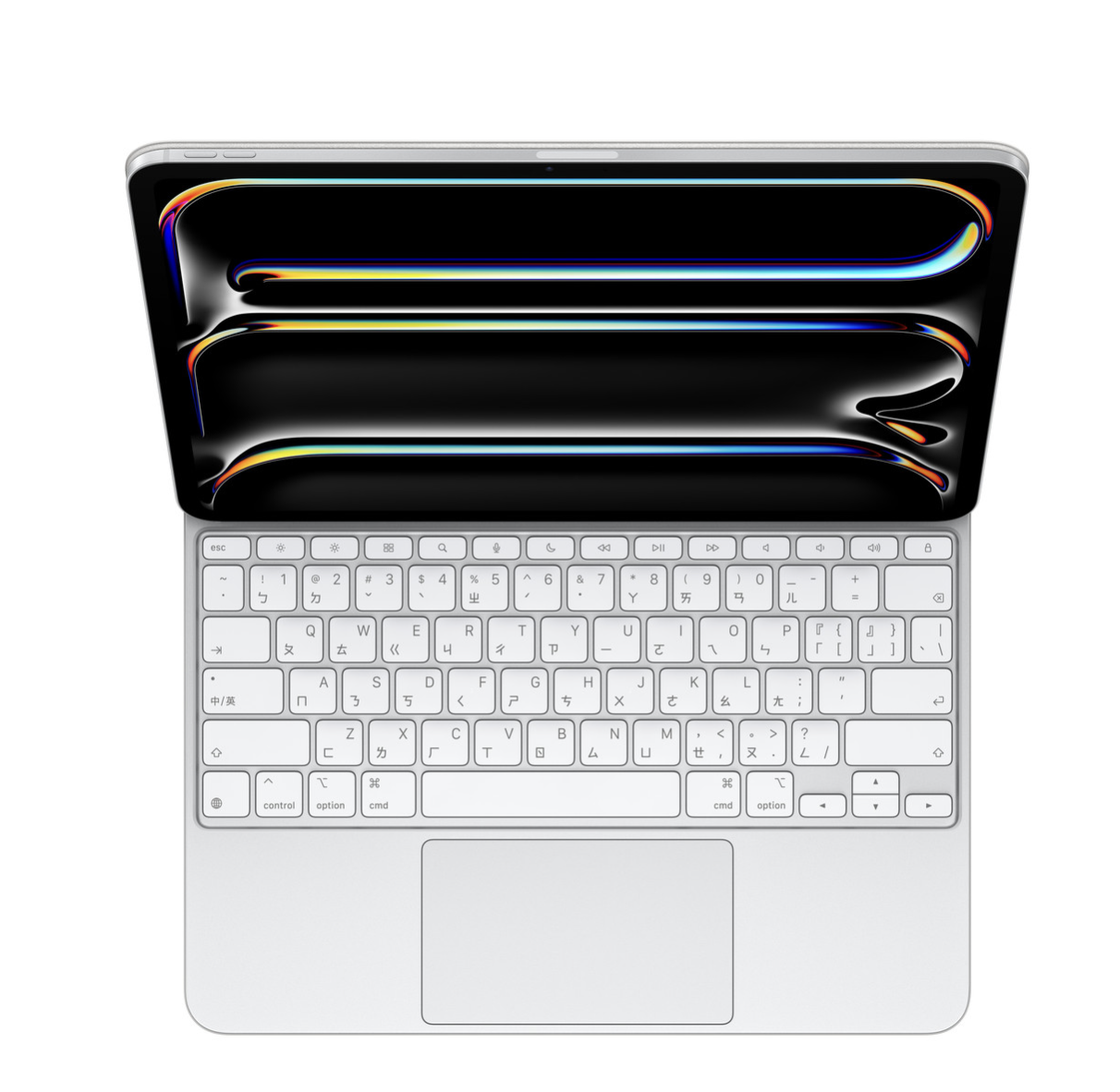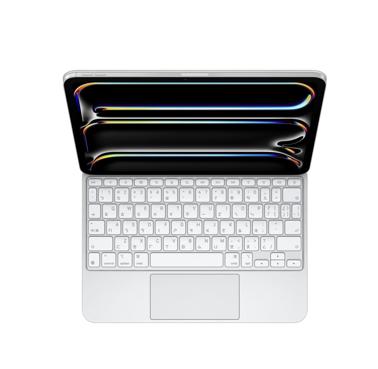 適用於 iPad Pro 的巧控鍵盤,採用流暢纖薄、方便攜帶的設計,並配備鋁金屬手托,為打字或操作觸控式軌跡板,帶來出色體驗。配備 14 鍵的功能鍵列,能快速取用螢幕亮度、音量控制和其他功能,還有 USB‑C 連接器用來直通充電。它的懸臂設計可順暢調整多種觀看角度。 寬大的觸控式軌跡板具備觸覺回饋,最適合用於要求精準的工作,例如編輯試算表和選取文字等。你也可以透過直覺且熟練的「多點觸控」手勢,簡單地操控 iPad。耐用的外層護蓋,則能保護 iPad Pro 的正面及背面,非常適合帶著到處走。