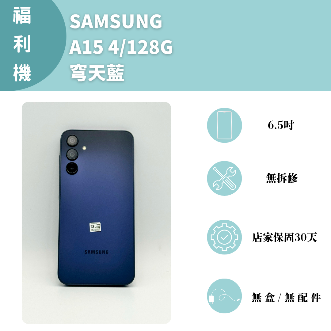 【手機名稱】三星 A15 【容量】 4/128G 【顏色】穹天藍 【配件】無盒/無配件 【價格】$2800 【機況】螢幕有使用痕跡,可接受再購買。 【店家保障】店家保固30天,實體店面經營,可現場確認機況。 下單前請先私訊和加LINE來幫您安排快速審核及回報審核進度 LINE ID:@kjg6280d 大呼小叫辰通訊行 雲林縣虎尾鎮林森路二段200號 電話:05-6339809 在地經營12年店家 GOOGLE 評價5顆星