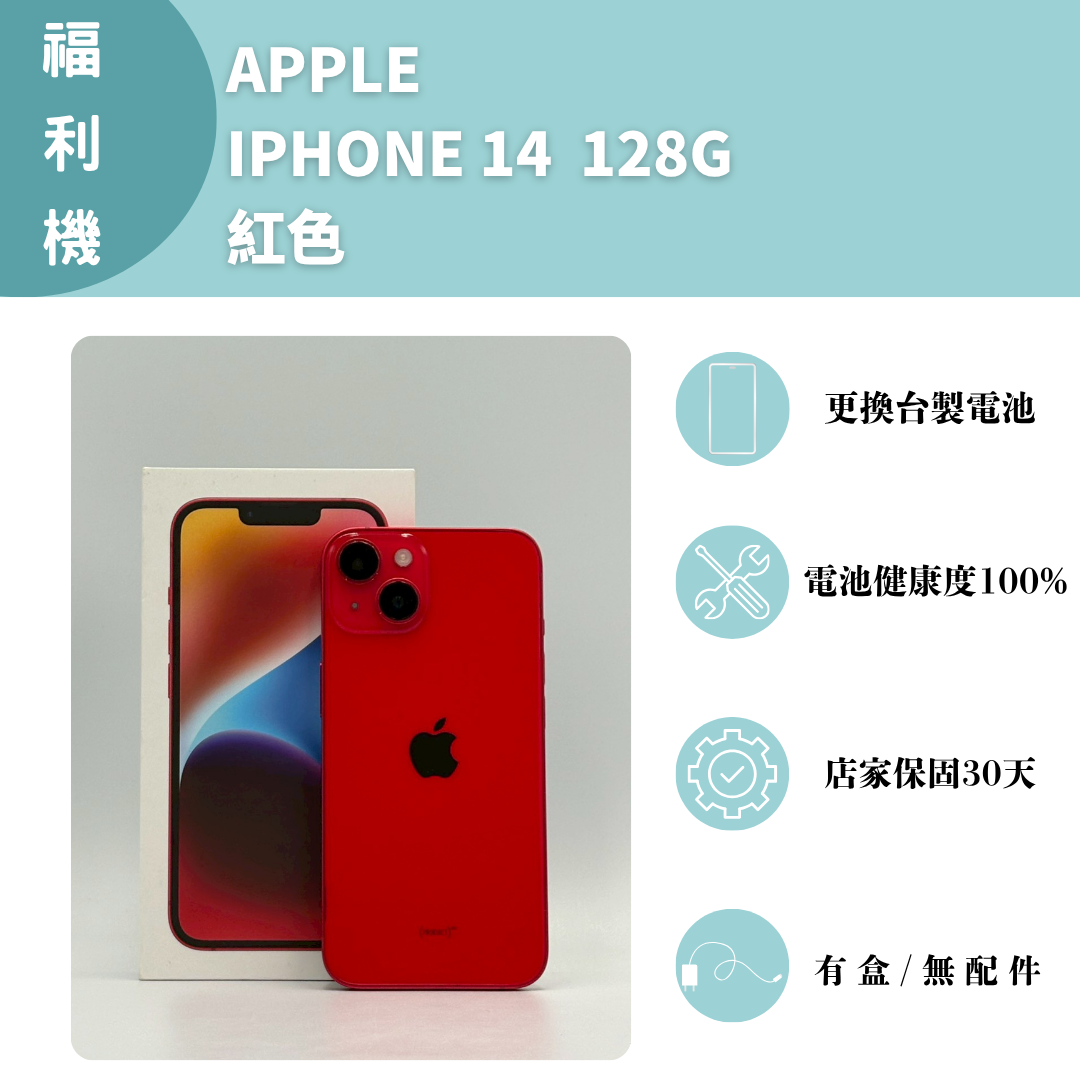 【手機名稱】 APPLE I14 【容量】128G 【顏色】 紅色 【電池】電池健康度100% 【外觀】 近全新 【配件】有盒/無配件 【保固】店家保固30天 【維修】更換台製電池 下單前請先私訊和加LINE來幫您安排快速審核及回報審核進度 LINE ID:@kjg6280d 大呼小叫辰通訊行 雲林縣虎尾鎮林森路二段200號 電話:05-6339809 在地經營12年店家 GOOGLE 評價5顆星
