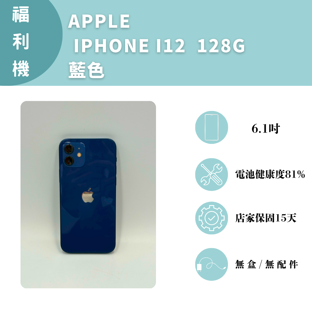 【手機名稱】 APPLE I12 【容量】128G 【顏色】藍色 【外觀】近全新 【配件】無盒/無配件 【電池】電池健康度81% 【保固】店家保固15天 【維修】無 下單前請先私訊和加LINE來幫您安排快速審核及回報審核進度 LINE ID:@kjg6280d 大呼小叫辰通訊行 雲林縣虎尾鎮林森路二段200號 電話:05-6339809 在地經營12年店家 GOOGLE 評價5顆星
