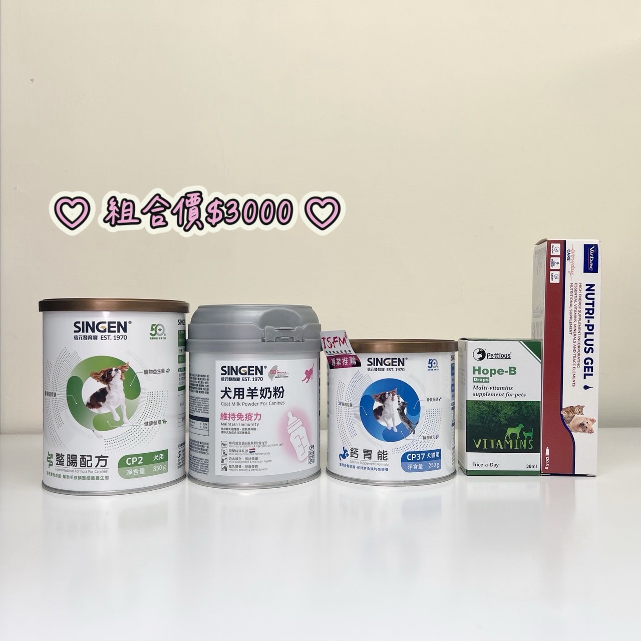 信元發育寶-腸胃保健益生菌 ✔️ 增進腸內菌叢之品質、幫助消化與維持腸道健康 ✔️ 豐富的維生素A、維生素B群、維生素D,保持愛寵健康 ✔️ 長期營養補給,維護腸胃健康,促進愛犬食慾 ✔️ 適口性佳,可單吃或混和食物 信元發育寶-鈣胃能骨質保健益生菌配方 ✔️幫助狗狗牙齒骨骼正常發育、骨骼發展與骨質保健 ✔️維持鈣磷比平衡,保持愛犬活力 ✔️日常關節保養,維持健康活力 ✔️適口性佳!可混和乾、濕糧中 犬用羊奶粉|荷蘭乳源 ✔️ 荷蘭純淨羊乳源,濃郁奶香促進食慾 ✔️ 全齡犬適用,幫助維持毛孩免疫力與營養補給 ✔️ 日常營養補給適用於新生幼犬、離乳調養日常營養品 富樂-B液 促進發育、增進食慾、增加體重、體力賦活、體質強化 維克克補營養軟膏 高能量補給,添加綜和維生素及礦物質,專為寵物設計的營養補充 施打疫苗、幼犬的營養補給