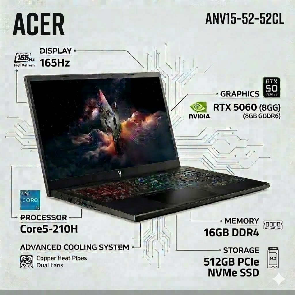 MIL-STD-810G 軍規測試 H55 CPU i5-14450HX + RTX 5060 8GB GDDR7 滿血強悍效能 165Hz / SRGB 100% / DDR5-5600 / 512GB PCIe 4.0 支援G-SyncN防撕裂技術 / 單區RGB多彩鍵盤 HDMI & Thunderbolt 4 with Display Port 支援雙螢幕輸 全新刀鋒式3D風扇 / 0分貝風散寂靜模式 支援2個M.2 Pcie SSD 擴充Slot / 支援WIFI 6 1080P FHD IR Camera /支援AI 降噪技術 30分鐘充電50%快充技術 / 180度開闔