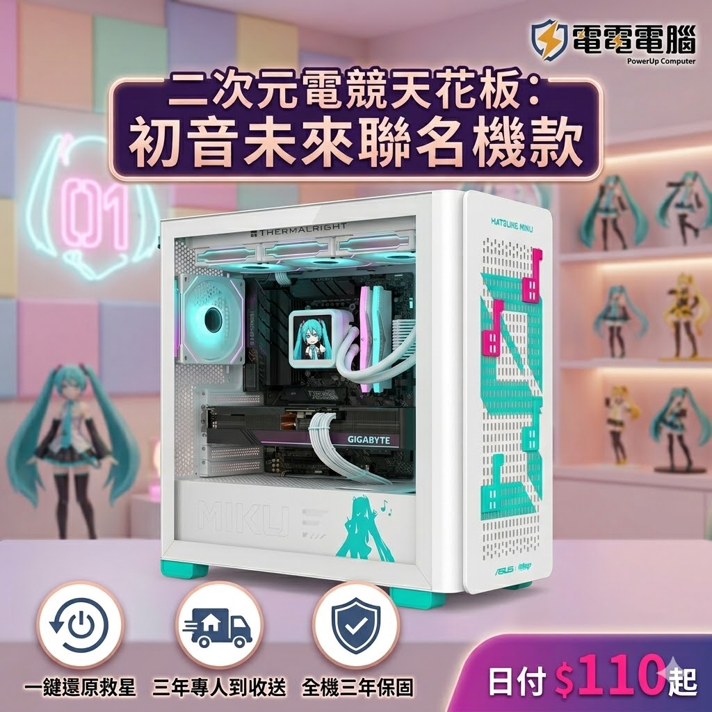 【信仰聖物介紹】ASUS A23 初音未來限定版——看過那耀眼的官方 Logo 勳章了嗎?🎵 阿宅們,這不只是個盒子,這是你的「老婆」!❤️ 這台電腦的靈魂在於這台 ASUS A23 初音未來限定版機殼,一個無處不彰顯信仰的官方聖物。