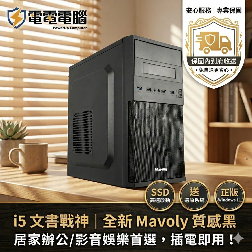 「電電電腦」為您嚴選的高CP值文書主機。核心採用 Intel i5 四核處理器,搭配 M.2 高速 SSD 與 8GB 記憶體,不論是居家辦公 (WFH) 視訊會議、處理複雜表格,或是給孩子遠距教學、觀看 4K 高畫質影音,都能流暢應付。
