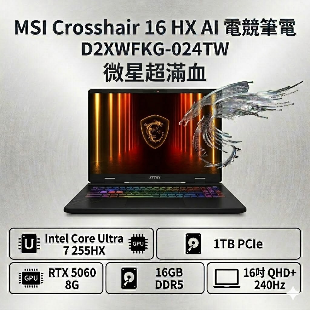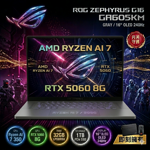 AMD Ryzen AI 7 350,8核心 32GB║1TB SSD║GeForce RTX5060 8GB Slash上蓋動態燈效║具備MUX獨顯直連