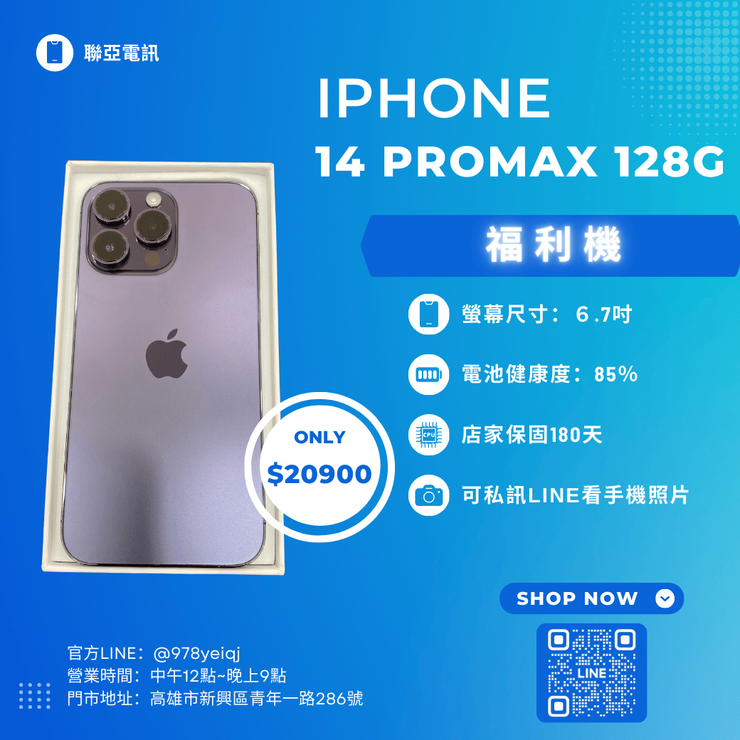 福利機IPhone 14 PROMAX 128G 保固180天 已經過專業檢測 嚴選福利機 下訂單前請先私訊官方Line :@978yeiqj 購買即贈 保護貼+保護殼+充電線