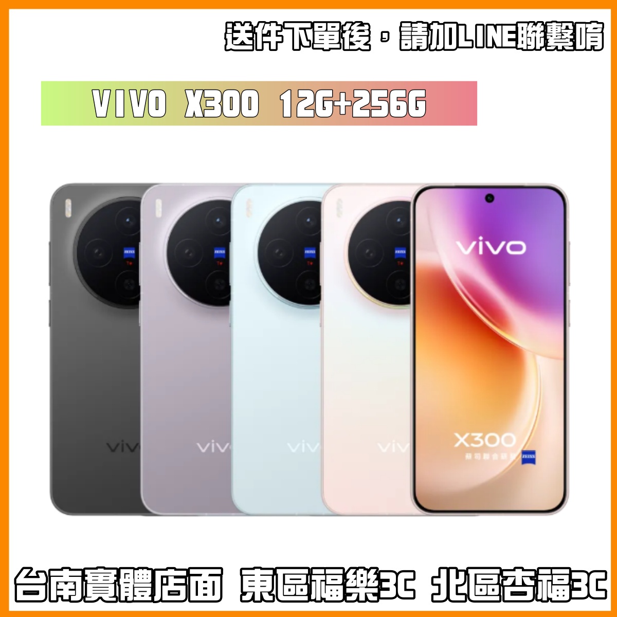 VIVO X300 12G+256G 【福樂&杏福3C】在地優質店家💯高過件率 【福樂&杏福3C】在地優質店家💯高過件率 遠信額度可直接使用 提醒您下單後請您一定要加LINE 安排快速審核與進度查詢 LINE ID:0903658271 我們有中多3C商品 如果於賣場內搜尋不到您要商品型號規格 可以優先加LINE洽詢唷~~感恩您! 地址:臺南市東區崇明路576號 手機:0903658271 地址:台南市北區公園北路98號 手機:0968882161 蔡司影像旗艦手機 vivo X300 6.31 吋蔡司大師色彩螢幕 vivo X300 配備 6.31 吋 AMOLED 蔡司大師色彩螢幕,支援 1~120Hz 動態更新率,具備 2160Hz 高頻 PWM 調光技術以及最高 4,500nits 峰值亮度。外型方面,延續 X 系列標誌性的圓形鏡頭模組與懸浮水滴冷雕玻璃設計,觸感溫潤且不沾指紋。 聯發科天璣 9500 vivo X300 搭載聯發科 2025 年度旗艦晶片天璣 9500,採用台積電第三代 3 奈米製程,使超大核在相同性能下功耗降低 55%,其中單核性能較上一代提升約 32%、多核性能提升約 17%。搭配 vivo 自研的藍圖影像晶片 V3+,更能實現雙晶片深度協同運算,提供強大的影像處理效能與能源效率。 6,040mAh 大電池 vivo X300 搭載第二代半固態大容量藍海電池,擁有 6,040mAh 大電量,結合軟硬一體的能效優化,續航表現穩穩地安卓第一梯隊。作業系統部分,全新 OriginOS 6 以「藍河流暢引擎」重構系統體驗,透過超核計算、雙渲染架構與光子存儲等底層技術,獲得 SGS 及泰爾實驗室「5 年全場景重度使用持久流暢」雙認證,並創新性實現與蘋果全家桶的生態互聯,將硬體潛力轉化為持久穩定、流暢的日常使用體驗。 蔡司 2 億超清主鏡頭 vivo X300 延續 Pro 級影像實力,將高階拍攝體驗帶給偏好小尺寸機身的用戶,後置 2 億蔡司超清主鏡頭 + 5,000 萬畫素蔡司超廣角鏡頭 + 5,000 萬畫素蔡司 APO 超級長焦鏡頭(最高 100 倍數位變焦),其中主鏡頭採用與 X300 Pro 長焦相同的感光元件,支持「先拍攝、後構圖」與 AI 電影分鏡功能。後置兩焦段變焦閃光燈,最高可提供 100 倍數位變焦能力。 攝影算法全新升級 vivo X300 透過全面算法升級,使人像攝影從「拍得清」升級到「拍得美、有故事感」,靜態人像提供多種美感風格及 AI 定制美顏,動態人像新增 Live Photo 路人消除功能。另外,夜景人像能精準分離人物與背景,搭配全焦段變焦閃光燈、電子柔光箱及創意模式,全面提升旅拍與夜景表現。