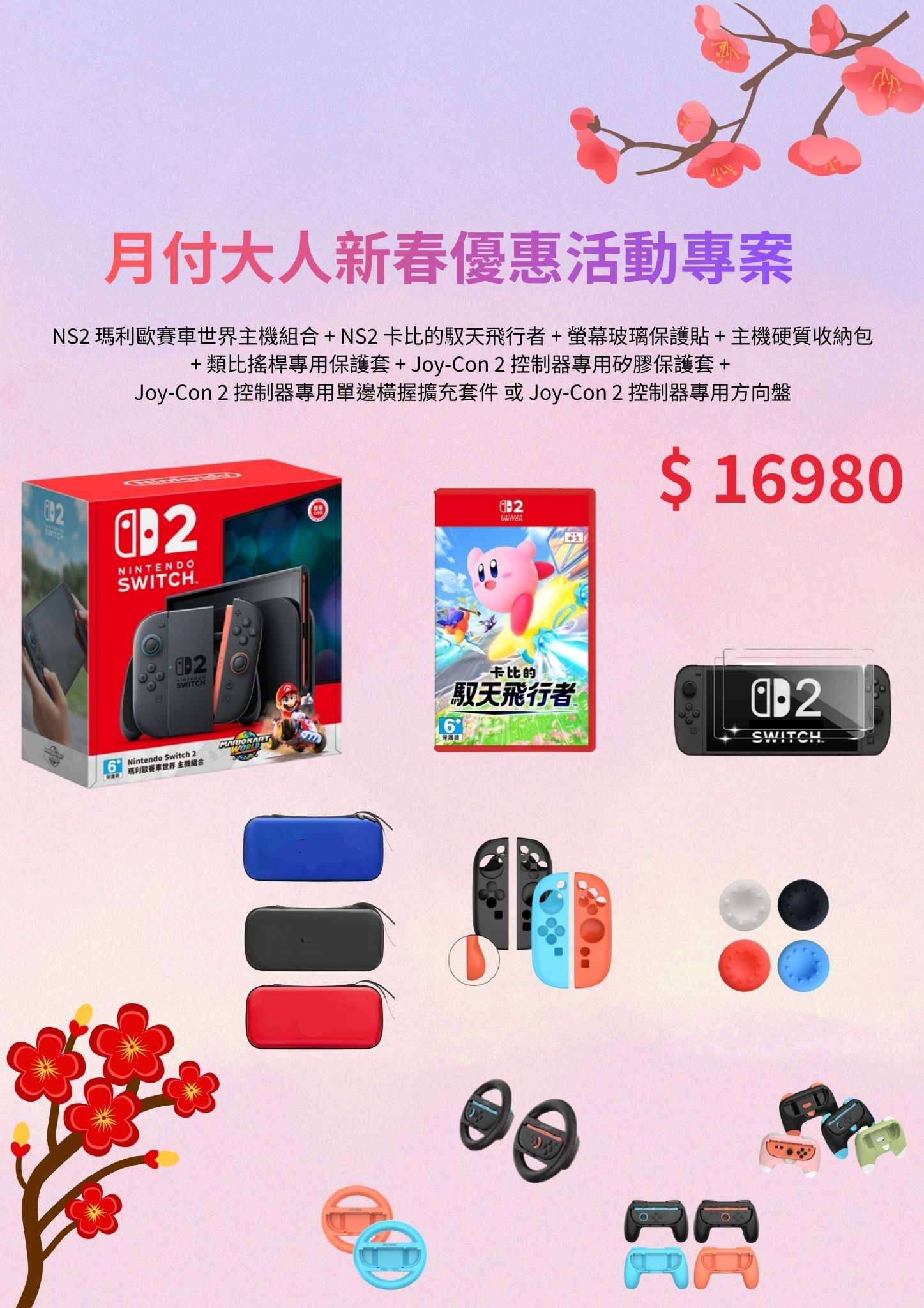 🎮 產品描述(Product Description) Nintendo Switch 2 任天堂於 2025 年 6 月 5 日全球推出的革新型混合式遊戲主機,是經典 Switch 系列的全面升級。結合了隨時遊玩的掌機模式與強大主機性能,採用全新 Nvidia T239(Ampere 架構)處理器,支援 DLSS 與光線追蹤技術,實現平滑的 1080p/120Hz 手持遊戲體驗與最高 4K/60fps 的電視輸出 。 7.9 吋全高清 LCD 螢幕搭配 HDR10 與可變刷新率(VRR)技術,畫質明亮細膩。Joy‑Con 2 採磁吸式連接,可作為滑鼠使用,並新增「C 鍵」以便快速啟動 GameChat 語音/視訊聊天功能 。 內建 256GB 高速 UFS 存儲,效能大幅提升,支援 microSD Express 擴充至最高 2TB(普通 microSD 卡僅限媒體瀏覽) 。此外,主機底座內建 Ethernet 埠與 USB‑A 埠,也加入風扇散熱設計,適合長時間使用與高階畫面輸出 。 GameChat 可讓最多 12 名玩家進行協同語音或視訊遊玩,支援文字轉語音與語音轉文字的無障礙功能,提升互動體驗 。 官方報告 Switch 2 自發售至今銷量已達 350 萬台,創下任天堂最快銷售記錄,充分彰顯品牌影響力與玩家期待 。