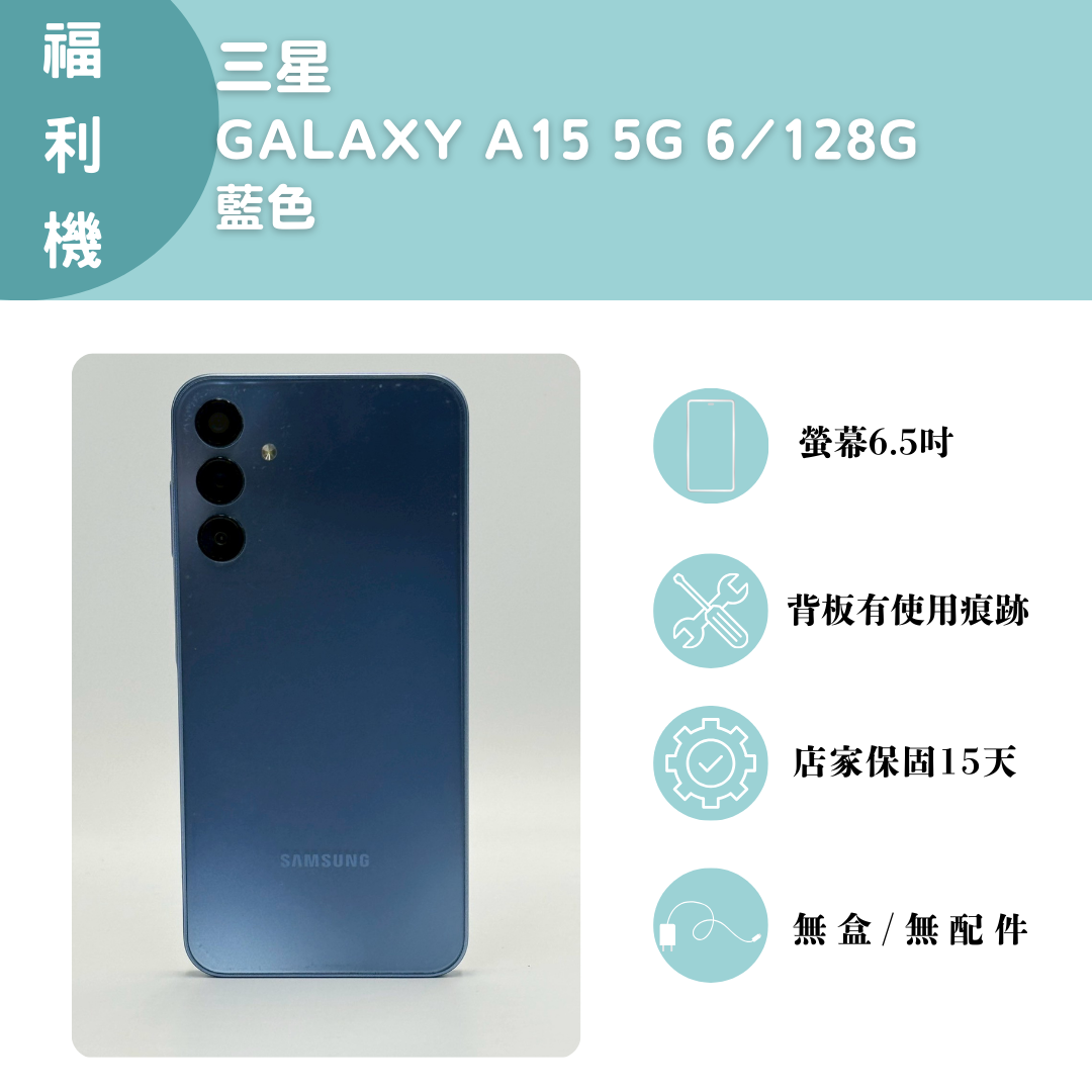 【手機名稱】三星 A15 5G 【容量】6/128G 【顏色】藍色 【外觀】螢幕6.5吋 【維修】無 【配件】無盒子/無配件 下單前請先私訊和加LINE來幫您安排快速審核及回報審核進度 LINE ID:@kjg6280d 大呼小叫辰通訊行 雲林縣虎尾鎮林森路二段200號 電話:05-6339809 在地經營12年店家 GOOGLE 評價5顆星