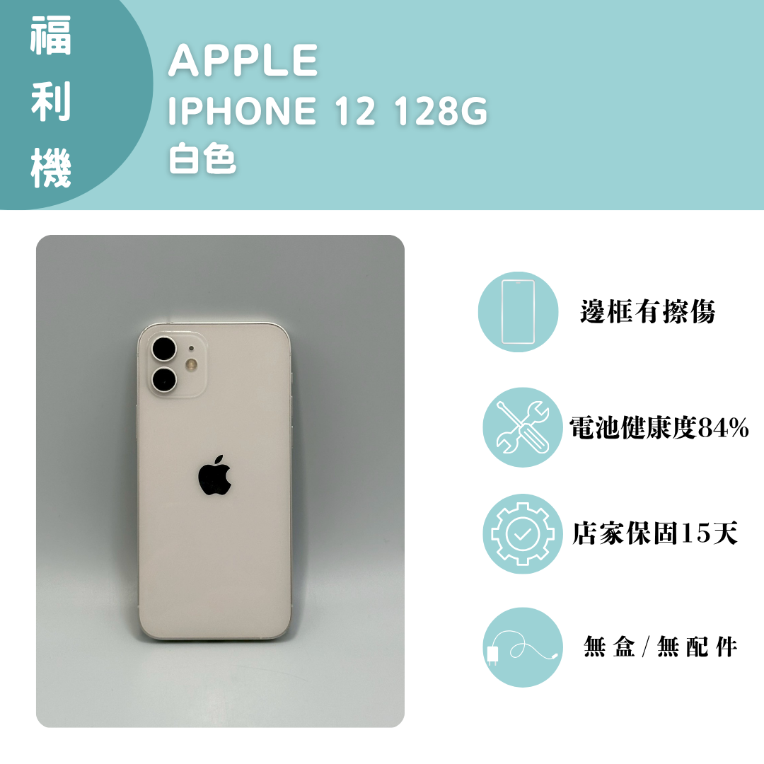 【手機名稱】 APPLE I12 【容量】128G 【顏色】白色 【配件】無盒子/無配件 【電池】電池健康度84% 下單前請先私訊和加LINE來幫您安排快速審核及回報審核進度 LINE ID:@kjg6280d 大呼小叫辰通訊行 雲林縣虎尾鎮林森路二段200號 電話:05-6339809 在地經營12年店家 GOOGLE 評價5顆星