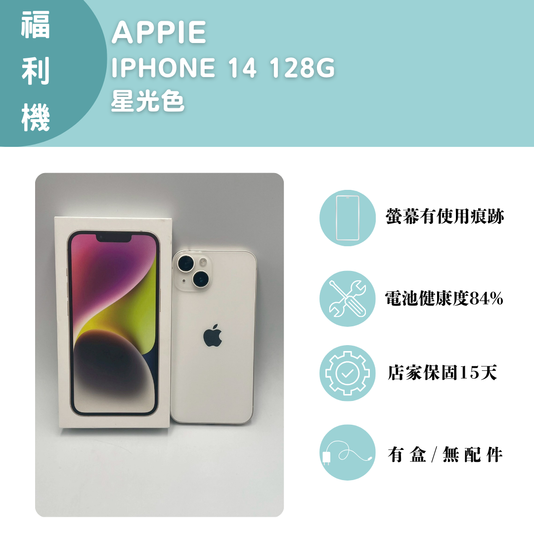 【手機名稱】APPLE I14 【容量】128G 【顏色】星光色 【外觀】螢幕有使用痕跡 【保固】店家保固15天 【配件】有盒子/無配件 【電池】電池健康度84% 下單前請先私訊和加LINE來幫您安排快速審核及回報審核進度 LINE ID:@kjg6280d 大呼小叫辰通訊行 雲林縣虎尾鎮林森路二段200號 電話:05-6339809 在地經營12年店家 GOOGLE 評價5顆星