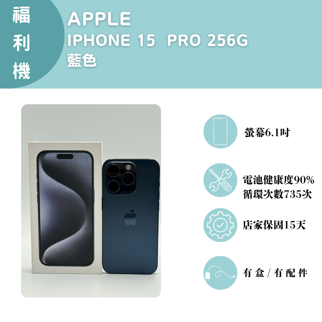 【手機名稱】APPLE I15 PRO 【容量】256G 【顏色】藍色 【外觀】螢幕6.1吋 【保固】店家保固15天 【配件】有盒子/有配件 【電池】電池健康度90% 循環次數735 下單前請先私訊和加LINE來幫您安排快速審核及回報審核進度 LINE ID:@kjg6280d 大呼小叫辰通訊行 雲林縣虎尾鎮林森路二段200號 電話:05-6339809 在地經營12年店家 GOOGLE 評價5顆星