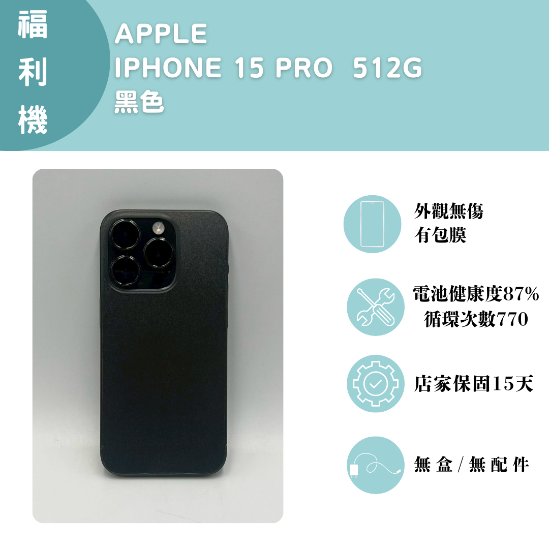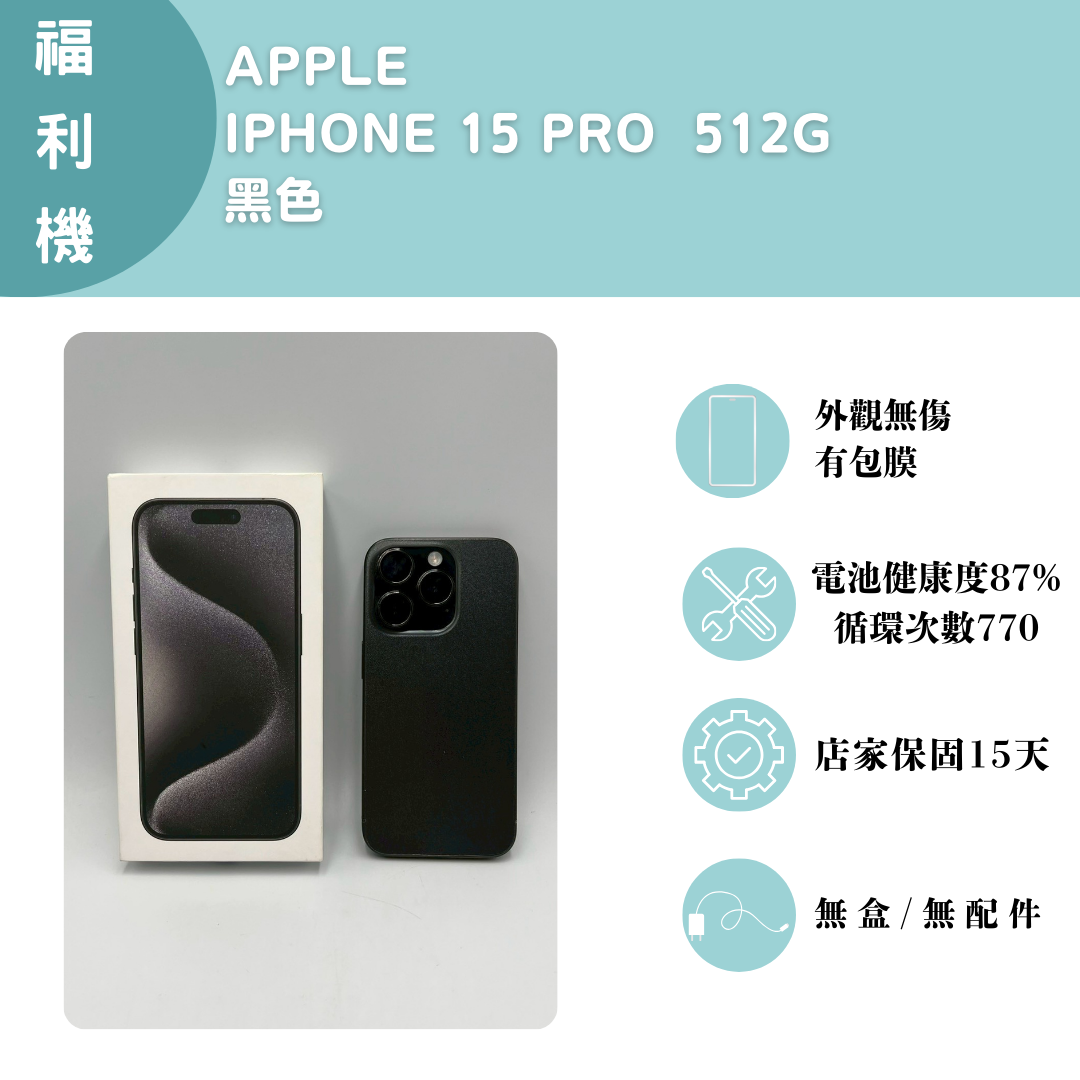 【手機名稱】APPLE I15 PRO 【容量】512G 【顏色】黑色 【外觀】無傷,有包膜 【維修】無 【配件】有盒子/無配件 【電池】電池健康度87% 下單前請先私訊和加LINE來幫您安排快速審核及回報審核進度 LINE ID:@kjg6280d 大呼小叫辰通訊行 雲林縣虎尾鎮林森路二段200號 電話:05-6339809 在地經營12年店家 GOOGLE 評價5顆星