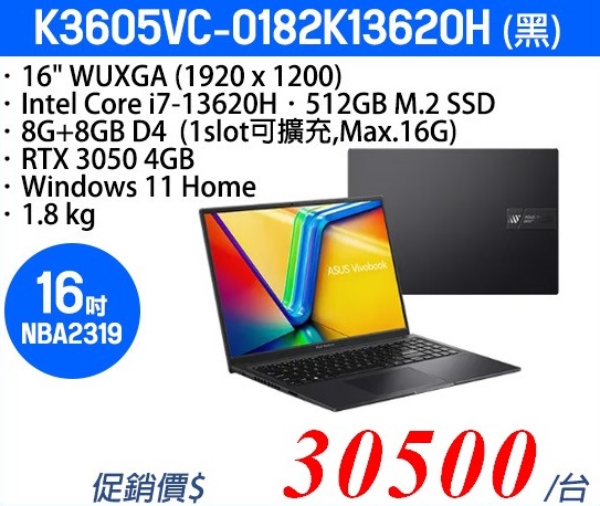 主要搭載Intel I7-13620H處理器、8GB+8GB記憶體、512GB M.2固態硬碟、RTX3050獨立顯示卡 ~賣場另有多款筆記型電腦可以選擇~