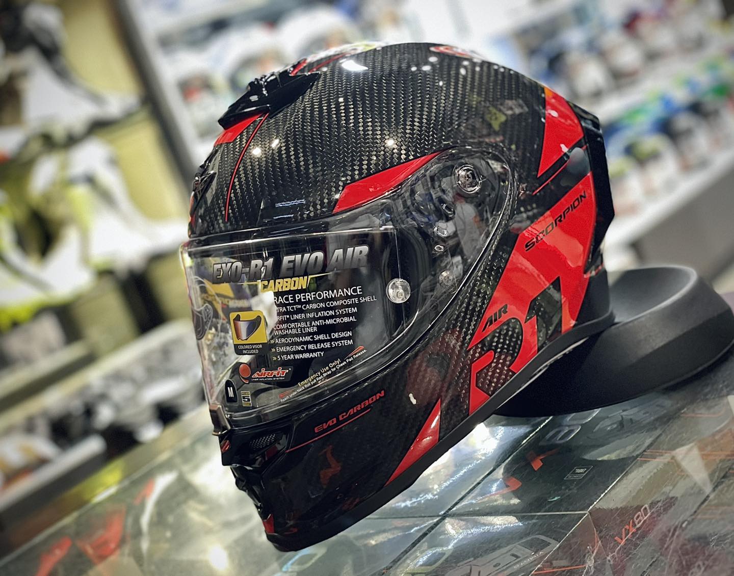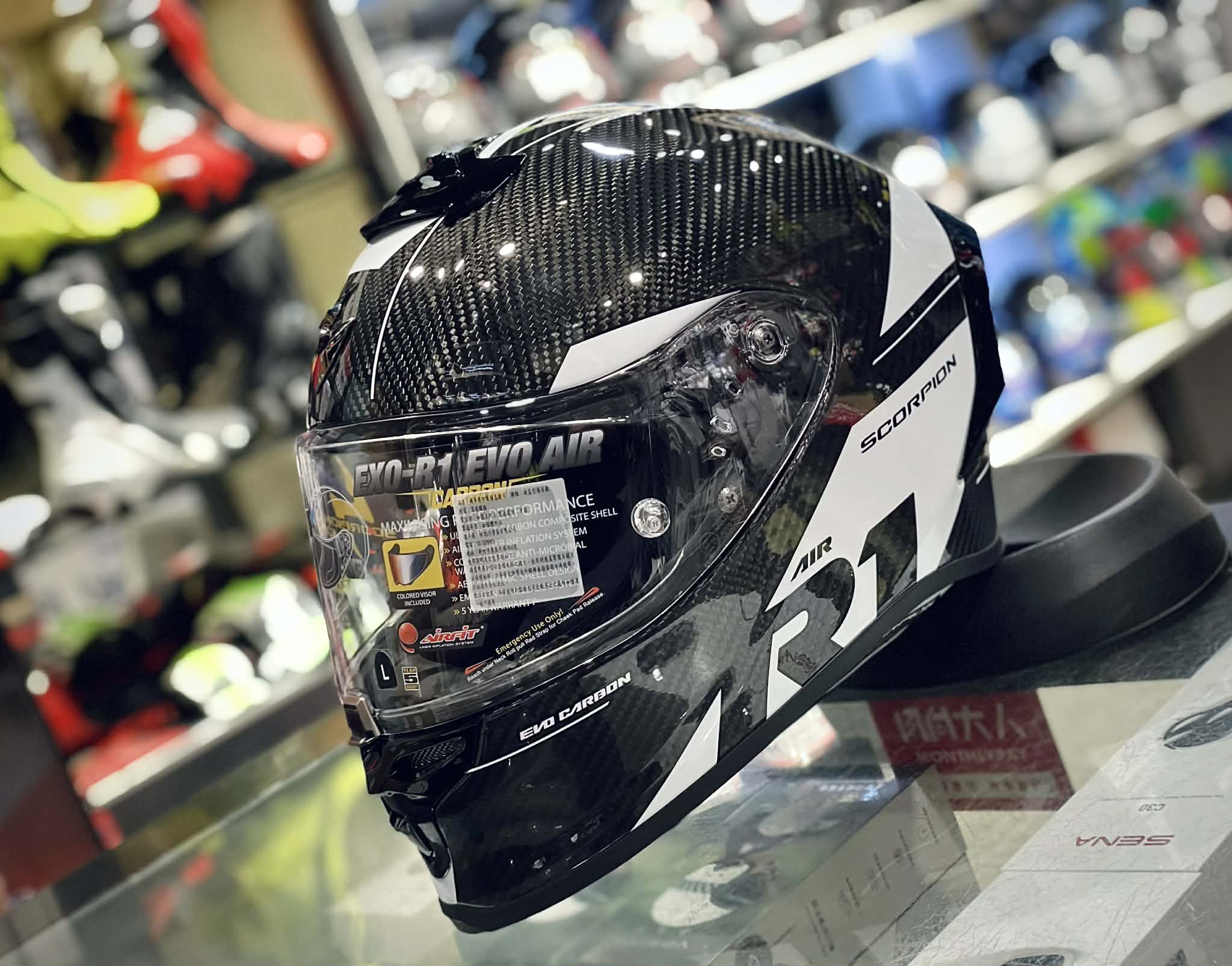 Scorpion Exo-R1 Carbon🚀 即贈🗣墨片🗣防霧片🗣鏡片收納袋‼️ - Ultra TCT®輕量化碳纖維外殼💎 🌟Airfit™臉頰充氣系統🌟最佳舒適度💋 超柔軟Kwikwick3®涼感舒適💠抗菌內襯