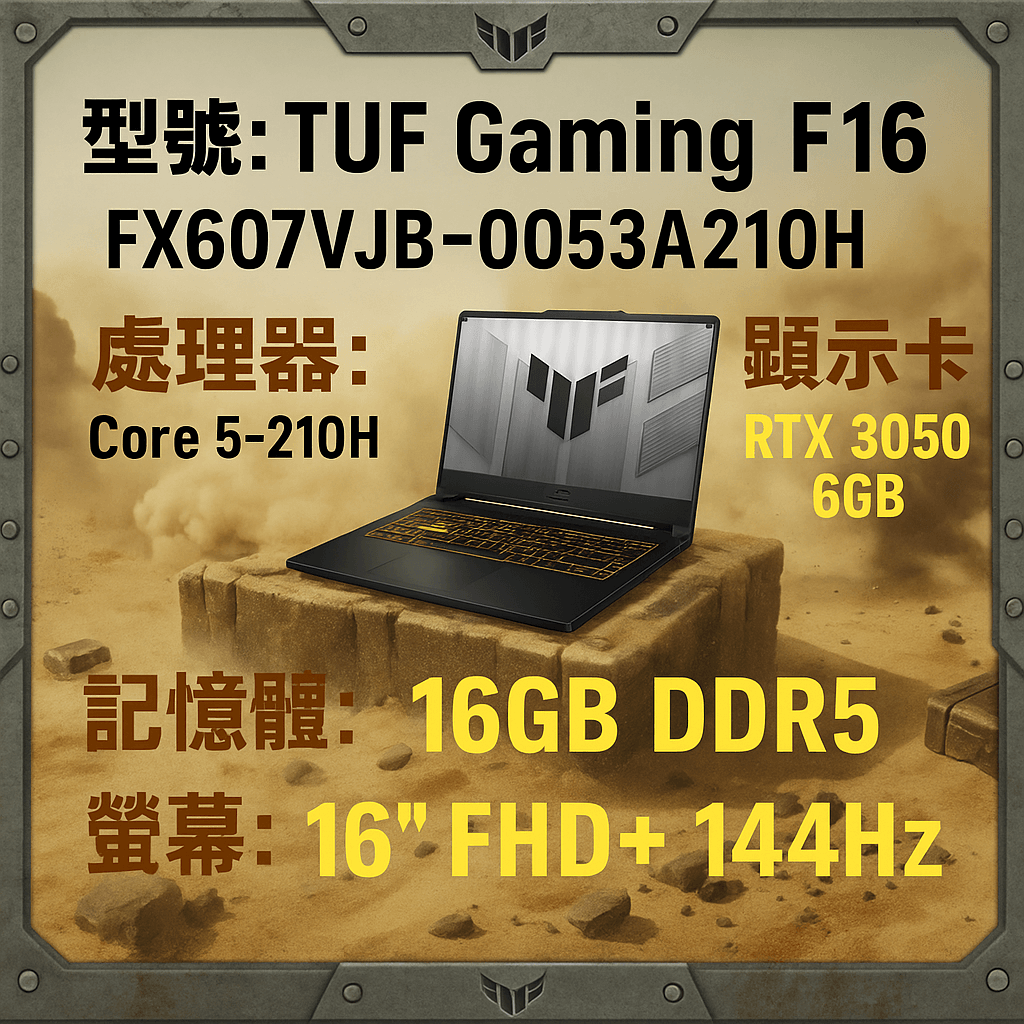 螢幕:16吋 WUXGA 165Hz, IPS 處理器:Intel®Core i5-13420H 顯示卡:NVIDIA® GeForce RTX™ 5050 8GB GDDR7