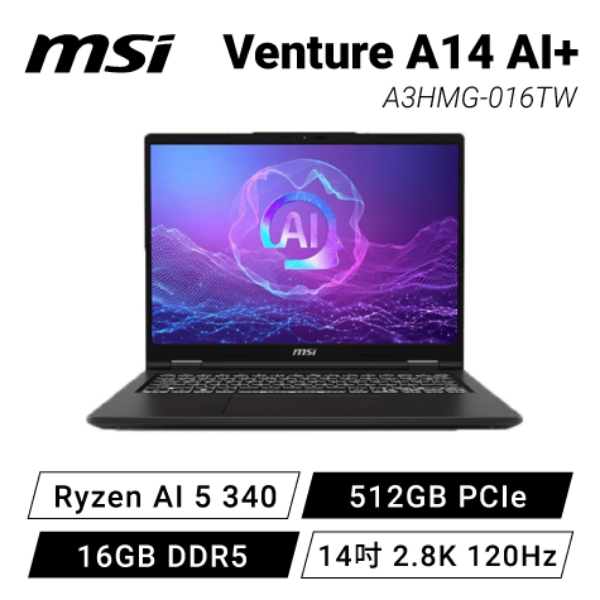 搭載 AMD Ryzen™ AI 5 340 6核/12緒 14吋 2.8K (2880x1800) OLED 120Hz / 100% DCI-P3 獨家微星AI智慧引擎針對使用情境自動切換最佳效能模式 搭載DTS Audio 音效技術 Windows 11 Home