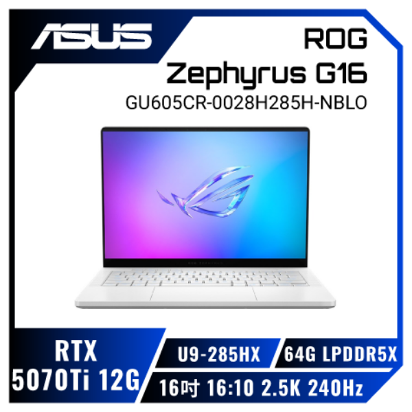 全機金屬 全球最輕薄效能電競 1.49cm & 1.95kg Slash上蓋動態燈效 Nebula霓真技術 2.5K OLED+240Hz / 0.2ms 100% DCI-P3 / Delta-E < 1 的色彩準確度+ Pantone 色彩認證 100萬:1 高對比度 / Dolby Vision 技術 提高畫面生動 / G-Sync Intel Core Ultra 9 / 強悍效能 RTX 5070 Ti / 獨顯直連 ROG智慧散熱:均溫板提高散熱效率、液態金屬降低13度,改善14倍導熱性、Arc Flow 84葉片 16:10 超大觸控板與放大12%鍵帽 提供最佳操作體驗 4揚聲器+雙重低音喇叭 / Dolby Atmos / AI 語音降噪 30分鐘快充50%電力 / PD充電