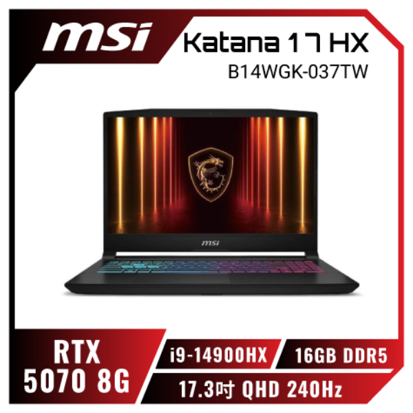 搭載 Intel® Core™7 240H 處理器 載最新GeForce RTX™ 5060 8GB GDDR7筆記型電腦GPU 支援NVIDIA DLSS 3, 超高效Ada Lovelace架構及 Max-Q 技術 17.3吋Full HD (1920x1080), 144 Hz 更新率IPS等級電競面板 穿透感半透明設計 獨特半透明鍵帽設計WASD熱鍵