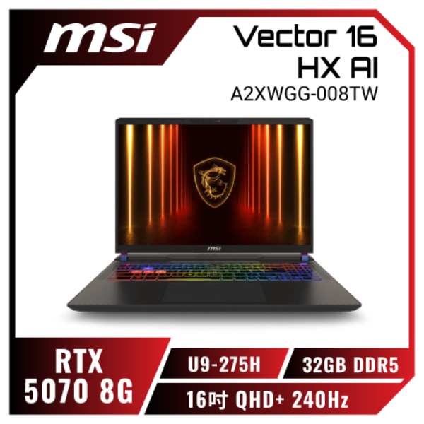 16吋 QHD+ (2560x1600),240Hz,IPS-level Intel Core Ultra 9 275HX GeForce RTX 5070 Laptop GPU 8GB GDDR7