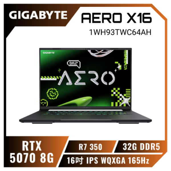 搭載 AMD Ryzen™ 9 7945HX 搭載最新 NVIDIA® GeForce RTX™ 5060 筆記型電腦 8GB GDDR7 16吋QHD+ (2560x1600), 16:10, 240Hz更新率, 100% DCI-P3, IPS等級電競面板