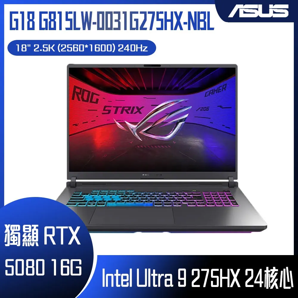 18吋 2.5K+240Hz 面板 兼具解析度與刷新率 超頻 Core Ultra 9 275HX + 強悍效能 RTX 5080 DCI-PE 100% / Pantone 認證 / ROG Nebula / Dolby Vision HDR / Anti-glare