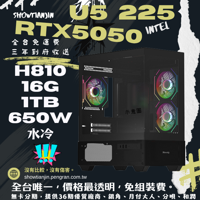 🎯 【核心戰力,拳拳到肉】 處理器: Intel i5-14400F (10核心),多工處理強,玩遊戲、開 discord、看攻略同時來也不卡。 顯示卡: 技嘉 RTX 5060 8G,支援最新 DLSS 3.5 技術,遊戲幀數直接翻倍,3A 大作順跑的保證。 記憶體: 金士頓 16G 雙通道,大廠顆粒,穩定耐用。 速度: 金士頓 1TB Gen4 SSD,開機秒進,讀圖不等待。