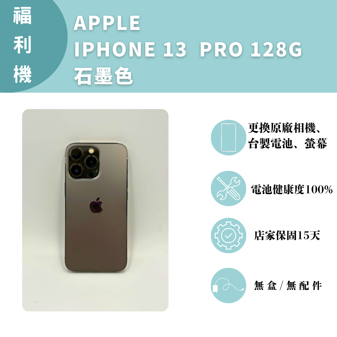 【手機名稱】 APPLE I13 Pro 【容量】128G 【顏色】石墨色 【外觀】近全新 【配件】無盒/無配件 【電池】電池健康度100% 【保固】無原廠保固 【維修】更換原廠相機、台製電池、螢幕 下單前請先私訊和加LINE來幫您安排快速審核及回報審核進度 LINE ID:@kjg6280d 大呼小叫辰通訊行 雲林縣虎尾鎮林森路二段200號 電話:05-6339809 在地經營12年店家 GOOGLE 評價5顆星