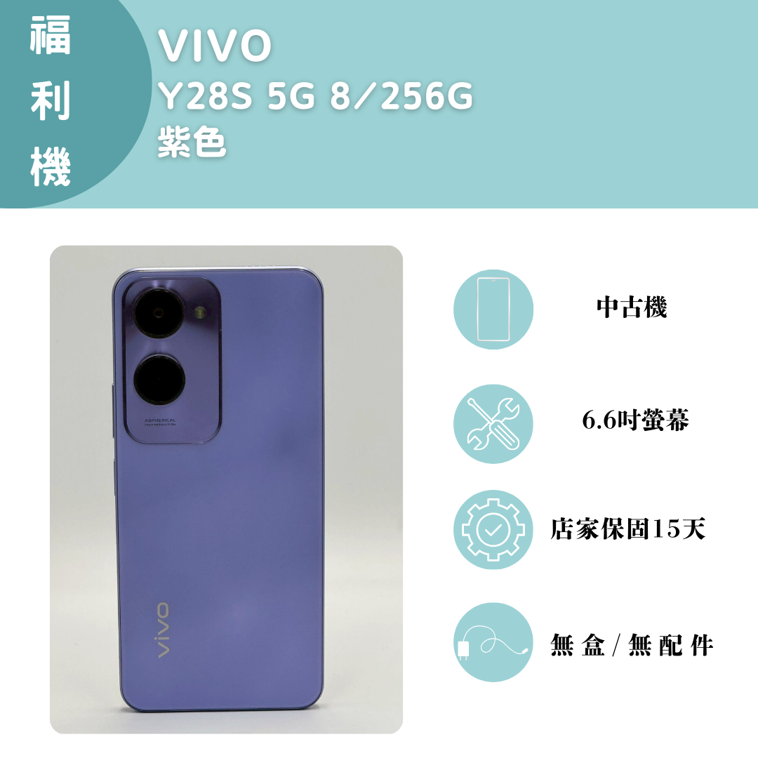 【手機名稱】VIVO Y28S 5G 【容量】8+256G 【顏色】紫色 【外觀】螢幕6.6吋 【維修】無 【配件】無盒子/無配件 下單前請先私訊和加LINE來幫您安排快速審核及回報審核進度 LINE ID:@kjg6280d 大呼小叫辰通訊行 雲林縣虎尾鎮林森路二段200號 電話:05-6339809 在地經營12年店家 GOOGLE 評價5顆星