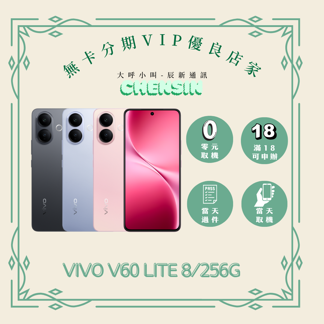 遠信額度可直接使用無需審核 【商品名稱】Vivo V60 LITE 【容量】 8/256G 下單前請先私訊和加LINE來幫您安排快速審核及回報審核進度 LINE ID:@kjg6280d 雲林縣虎尾鎮林森路二段200號 電話:05-6339809