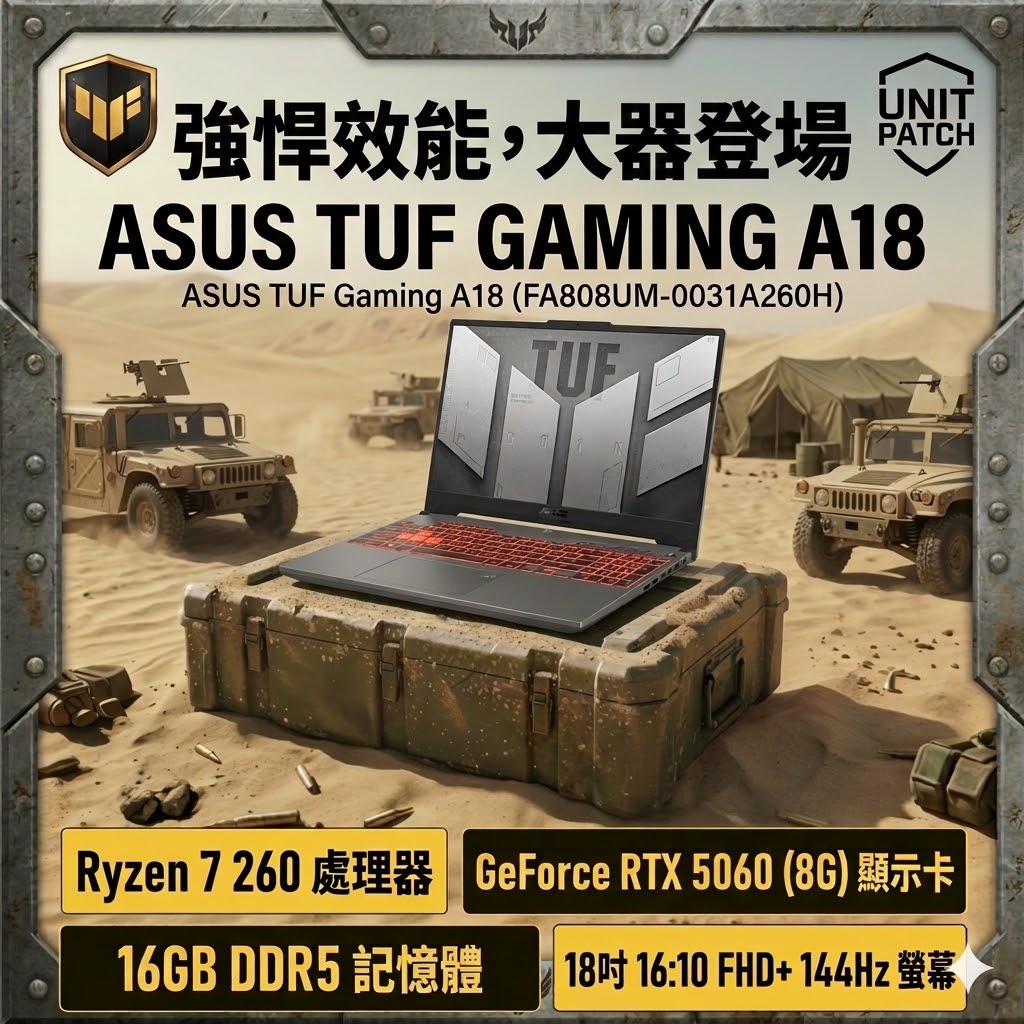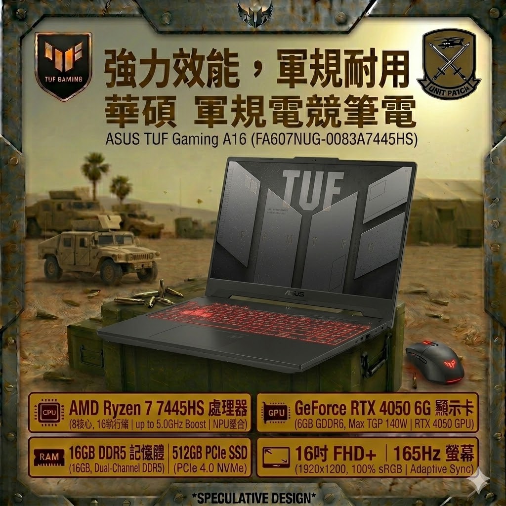 AMD 7000系列R7+RTX-4050系列TUF 軍規電競 MIL-STD-810G 軍規測試 支援G-SyncN防撕裂技術 單區RGB多彩鍵盤 HDMI & Type C With Diplay Port 支援雙螢幕輸出 全新刀鋒式3D風扇 / 0分貝風散寂靜模式 支援2個M.2 Pcie SSD 擴充Slot 支援WIFI 6 / 支援AI 降噪技術 30分鐘充電50%快充技術