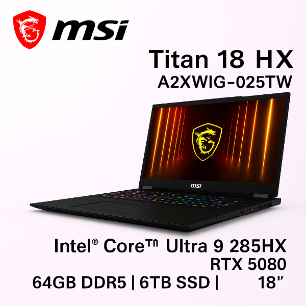 最新Intel® Core™ Ultra 9 處理器285HX 搭載NVIDIA® GeForce RTX™ 5080 16GB GDDR7筆記型電腦GPU,支援NVIDIA DLSS 3, 超高效Ada Lovelace架構及 Max-Q 技術 18吋UHD+ (3840x2400), 16:10, MiniLED, 120Hz更新率, 100% DCI-P3 , VESA DisplayHDR™ 1000 認證, IPS等級面板 鎂鋁合金材質打造質感機身 SteelSeries 獨家打造Cherry 單鍵RGB超薄機械式鍵盤 Mystic Light無邊界RGB觸控板設計 均溫板散熱設計,包含2風扇與4散熱出風口 99.9Whr 超大容量電池 IR FHD 視訊鏡頭具備實體隱私遮罩設計,支援HDR & 3D Noise Reduction Plus降噪功能 Windows 11 Pro