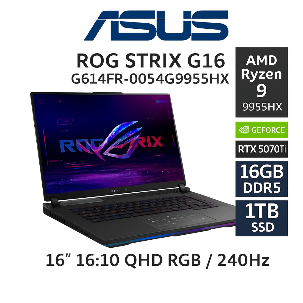 NVIDIA® GeForce RTX™ 5070 Ti Laptop GPU 12GB G AMD Ryzen™ 9 9955HX Processor 2.5GHz 1TB PCIe® 4.0 NVMe™ M.2 SSD