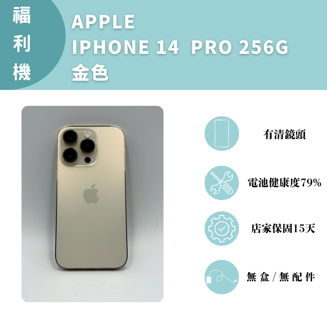 【手機名稱】 APPLE I14 PRO 【容量】256G 【顏色】金色 【外觀】近全新 【配件】無盒/無配件 【電池】電池健康度79% 【保固】店家保固15天 【維修】清鏡頭 下單前請先私訊和加LINE來幫您安排快速審核及回報審核進度 LINE ID:@kjg6280d 大呼小叫辰通訊行 雲林縣虎尾鎮林森路二段200號 電話:05-6339809 在地經營12年店家 GOOGLE 評價5顆星