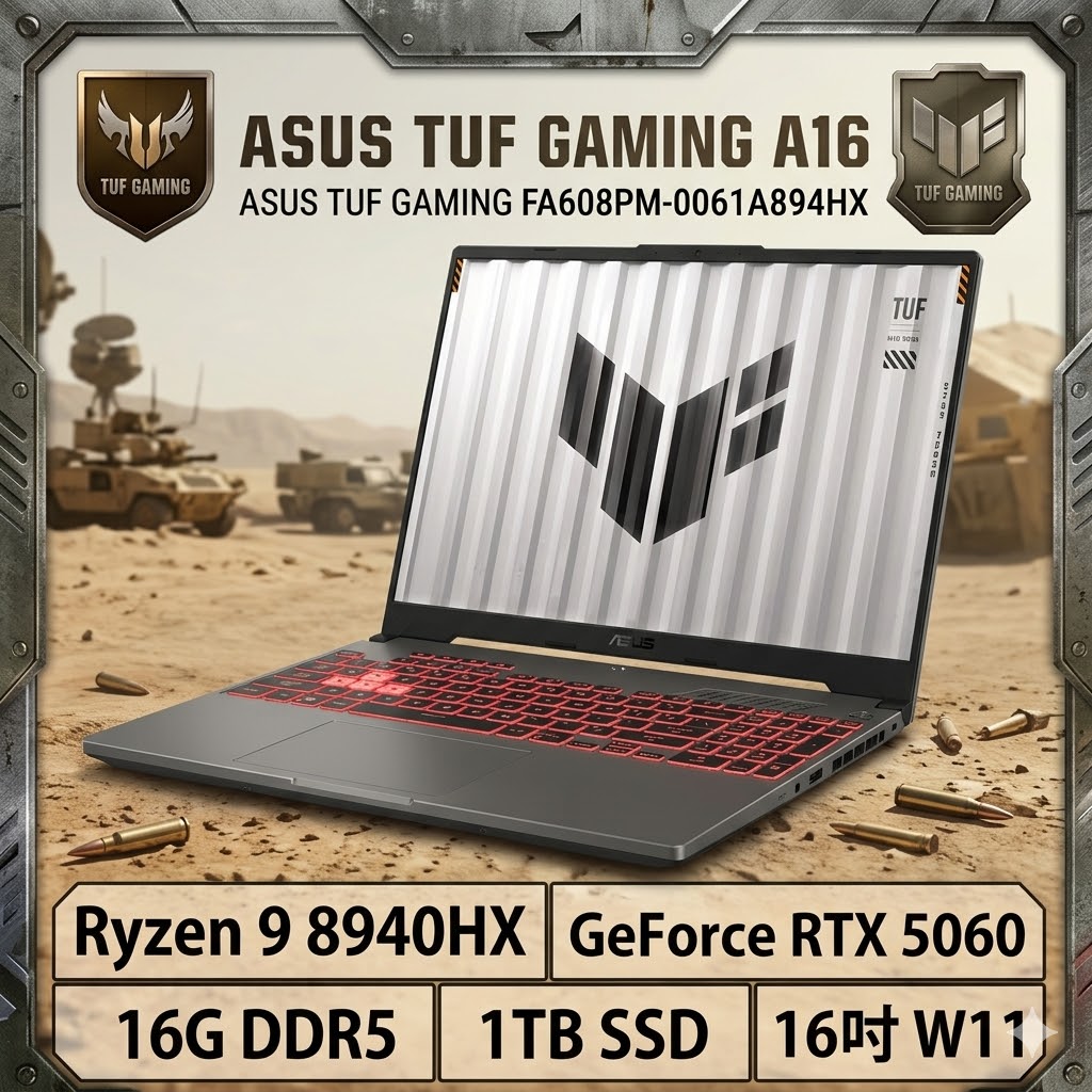 16吋薄邊框 180度開闔 滿血版 強悍效能 RTX 5060 隨貨附TUF M3 電競滑鼠