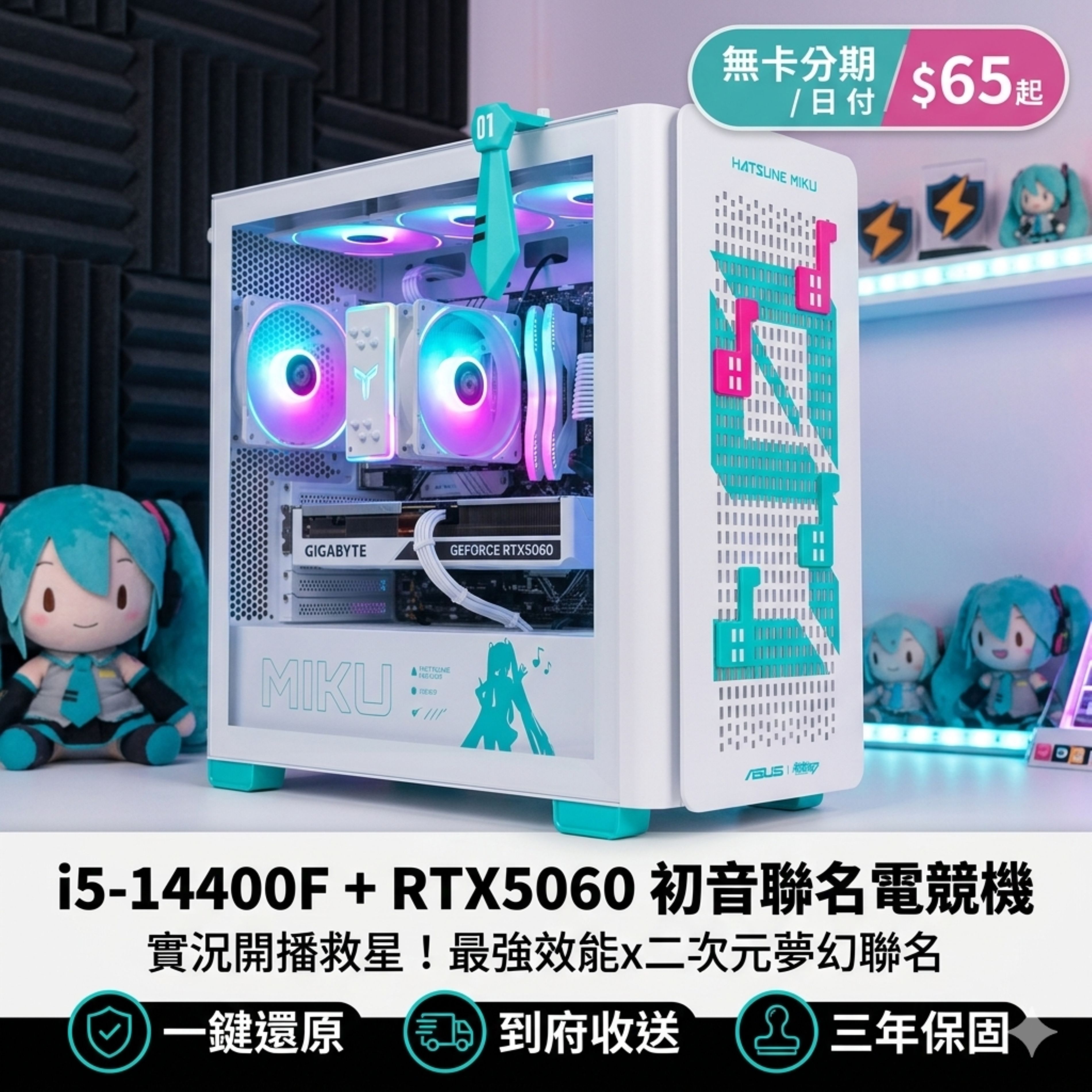 📣 VTuber 實況主必備!與 Miku 共譜實況新樂章 📣 各位二次元博主、VTuber 實況主們注意!電電電腦 (POWERUP Computer) 為您獻上終極夢幻主機—— ASUS A23 初音未來限定版!這不只是一台主機,更是您實況中最強勁、最吸睛的搭檔。