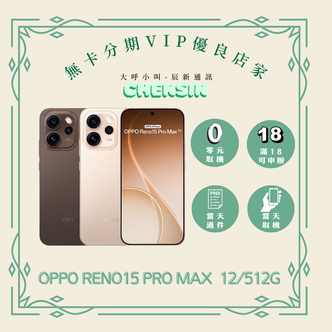 遠信額度可直接使用無需審核 【商品名稱】OPPO RENO 15 PRO MAX 【容量】 12/512G 下單前請先私訊和加LINE來幫您安排快速審核及回報審核進度 LINE ID:@kjg6280d 大呼小叫辰通訊行 雲林縣虎尾鎮林森路二段200號 電話:05-6339809 在地經營12年店家 GOOGLE 評價5顆星