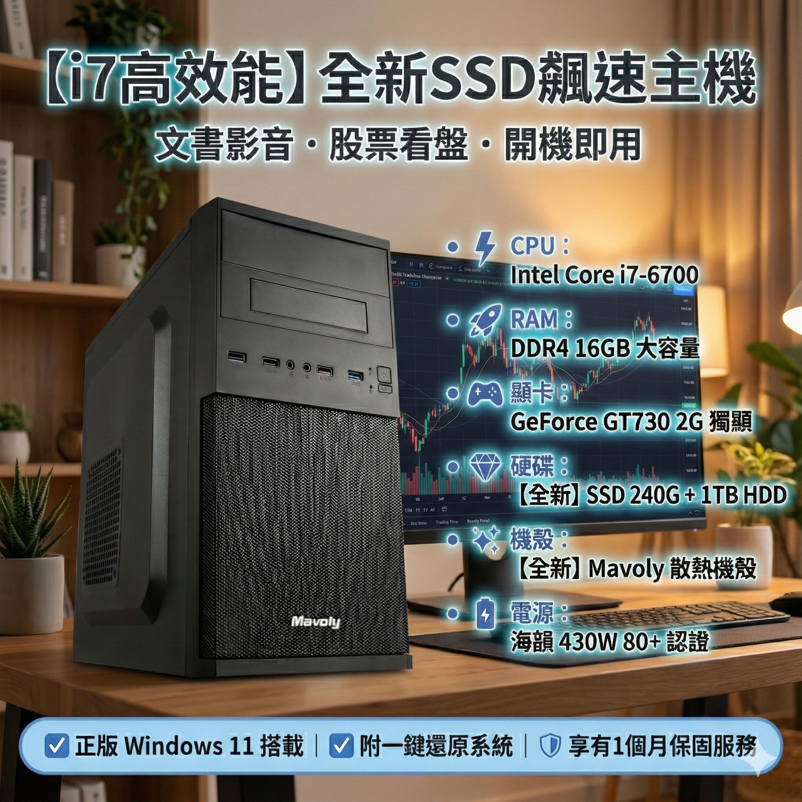 不想花大錢買新電腦,又怕二手跑不動? 這台搭載 Intel i7 處理器,搭配 16GB 大記憶體 與 全新 SSD,開機秒進系統,多開網頁不卡頓!機殼與硬碟都是新的,穩定耐用!