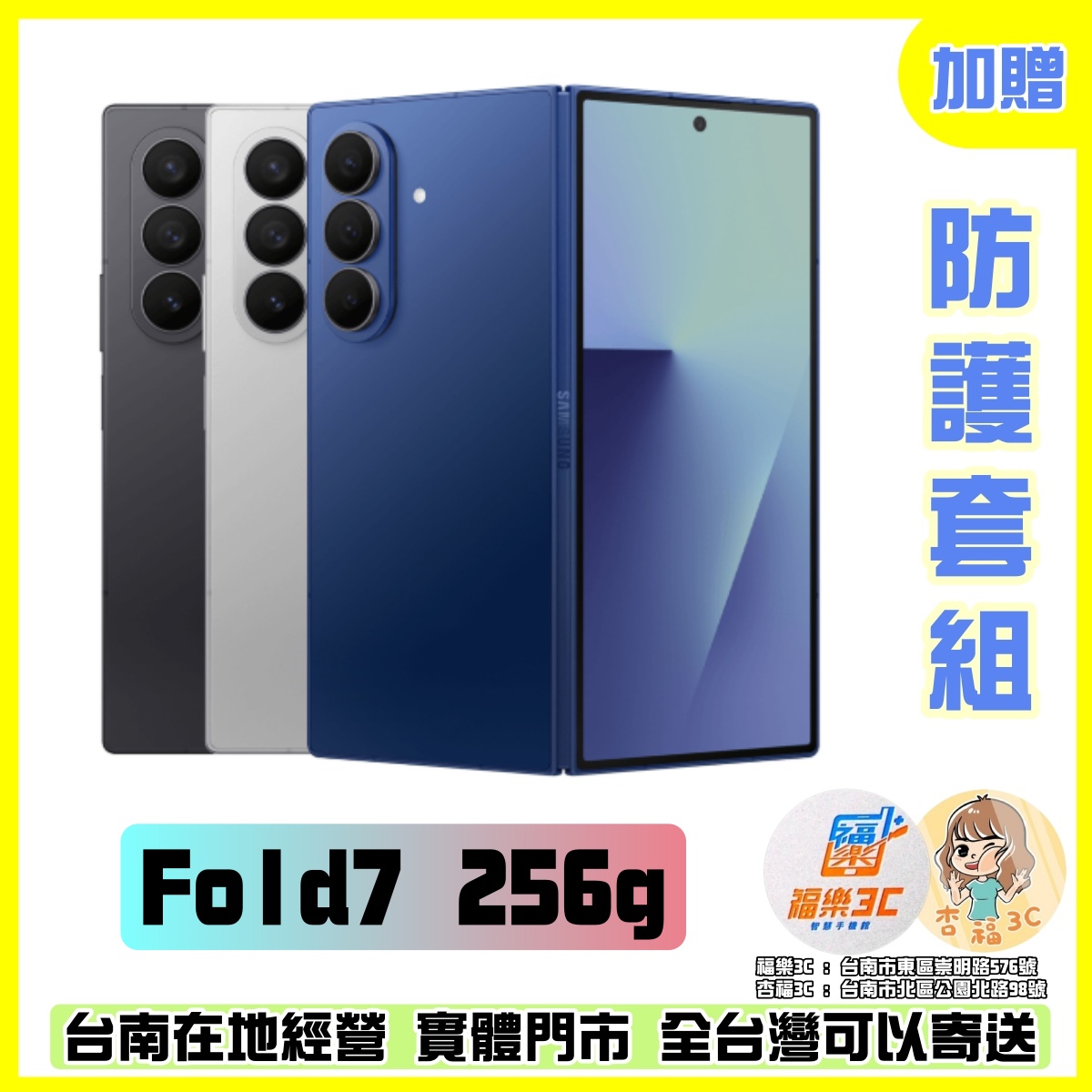 SAMSUNG Galaxy Z Fold7 256G【福樂&杏福3C】在地優質店家💯高過件率 【福樂&杏福3C】在地優質店家💯高過件率 遠信額度可直接使用 提醒您下單後請您一定要加LINE 安排快速審核與進度查詢 LINE ID:0903658271 我們有中多3C商品 如果於賣場內搜尋不到您要商品型號規格 可以優先加LINE洽詢唷~~感恩您! 地址:臺南市東區崇明路576號 手機:0903658271 地址:台南市北區公園北路98號 手機:0968882161 8 吋可摺疊大螢幕 SAMSUNG Galaxy Z Fold7 採用 6.5 吋 21:9 比例的封面螢幕,展開後則是 8 吋 QXGA+ 解析度的可摺疊內頁螢幕,兩側皆搭載 Dynamic AMOLED 2X 顯示面板,支援最高 120Hz 螢幕更新率、峰值亮度高達 2,600nits,帶來流暢細膩的視覺體驗。封面螢幕設計讓用戶無需展開手機也能查看通知、回覆訊息,透過多款客製化封面和 Widget 小工具,輕鬆打造專屬個人風格主題,兼具實用與美感。 8.9mm 摺疊厚度 SAMSUNG Galaxy Z Fold7 機身設計更為輕薄,重量減至 215g,摺疊時厚度僅 8.9mm,展開後最薄處更僅 4.2mm,帶來更輕巧的握持手感。機背採用康寧 Gorilla Glass Victus 2 強化玻璃,封面則升級使用 Gorilla Glass Ceramic 2,透過將晶體精密地嵌入玻璃結構中,為超薄螢幕提供絕佳保護,確保堅韌度和抗裂性,同時搭配強化版 Armor 鋁合金金屬框架,耐用性全面提升。全新雙軌 FlexHinge 轉軸設計,結合 IP48 防塵防水等級,不僅輕盈、展開平整也更堅固可靠。生物辨識部分則延續整合式電源鍵與指紋辨識器。 高通 Snapdragon 8 Elite for Galaxy SAMSUNG Galaxy Z Fold7 運行 Android 16 作業系統、One UI 8 操作介面,搭載 Qualcomm Snapdragon 8 Elite for Galaxy 行動平台,提供 12GB RAM + 256GB ROM、12GB RAM + 512GB ROM、16GB RAM + 1TB ROM;支援 5G + 5G 雙卡雙待,具備 Wi-Fi 7、藍牙 5.4、NFC、VoLTE 與 VoWifi 等功能。續航方面,配置 4,400mAh 電池,支援 25W 超快速充電 2.0、無線閃充 2.0、無線電力分享。 Galaxy AI 應用 SAMSUNG Galaxy Z Fold7 提供 AI Results View 以分割視窗或浮動視窗形式顯示 AI 功能的處理結果,瀏覽原始內容時不受干擾。此外,能直接從該分割視窗拖放 AI 生成內容,包括影像和文字,進一步提升效率。同樣具備 Gemini Live 與全新升級的 Galaxy AI 應用,支援跨 APP 執行的 AI 語音指令。另外,塗鴉轉圖像功能也有升級,輸入文字生成圖像即可支援匯入圖片後編輯,其他還有再進化的 AI 智慧選取功能、AI 口語搜尋、智慧相片編輯、音訊橡皮擦、新版智慧通話助理、個人頭條、Now Bar 等服務。 2 億畫素主鏡頭 SAMSUNG Galaxy Z Fold7 機身前後搭載 5 顆相機鏡頭,其中包含背蓋上的 2 億畫素主鏡頭 + 1,200 萬畫素超廣角鏡頭 + 1,000 萬畫素長焦鏡頭,以及封面螢幕上的前相機 1,000 萬畫素封面鏡頭,與內頁螢幕上的 1,000 萬畫素鏡頭。主鏡頭具備 2 倍光學品質變焦,長焦鏡頭提供 3 倍光學變焦、30 倍超高倍變焦,搭配 10-bit HDR 錄影與升級版 ProVisual Engine,能改善對比度、色彩和細節,增強清晰度,以及提升膚色和質感。同樣支援智慧相片編輯、音訊橡皮擦等 Galaxy AI 應用。