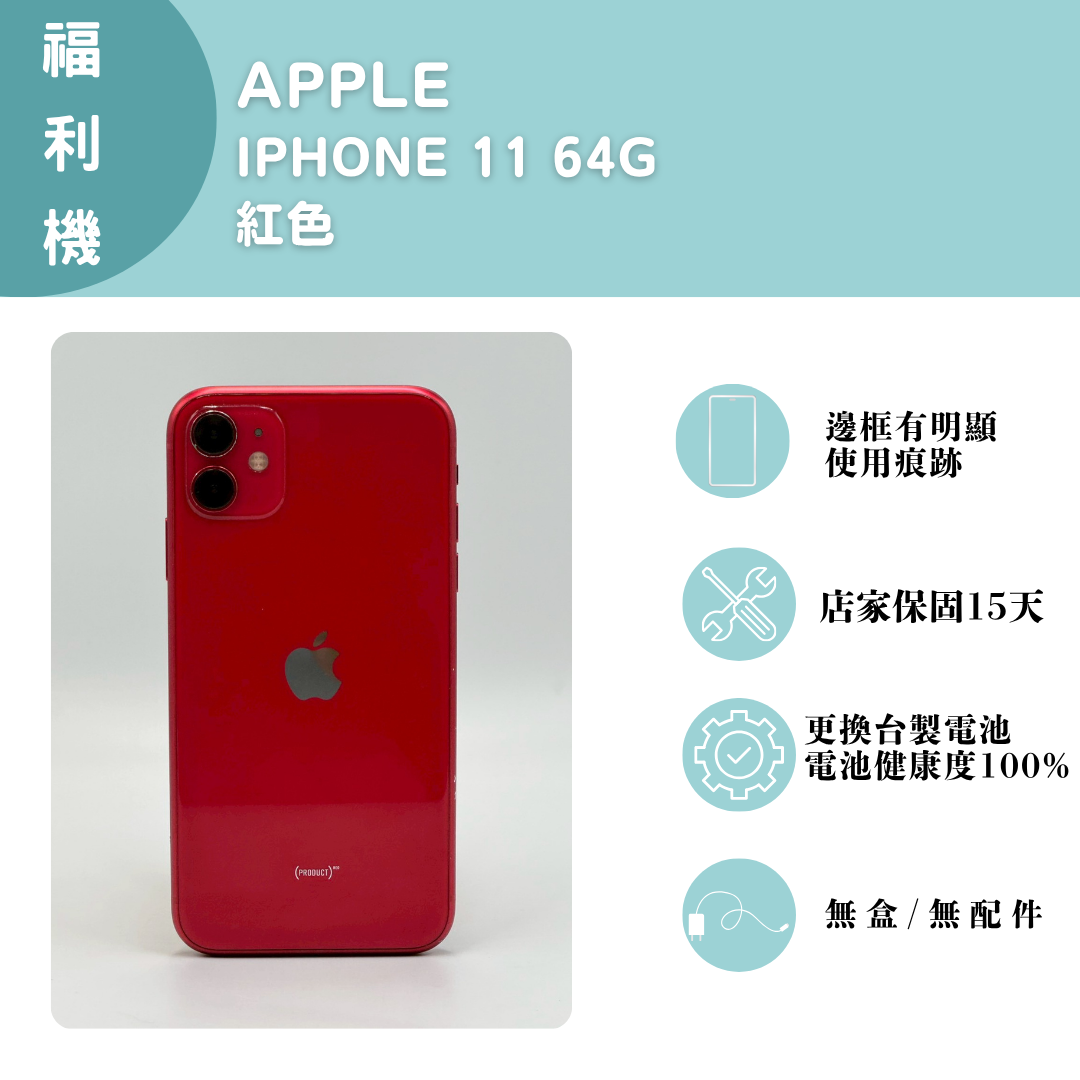 【手機名稱】 APPLE I11 【容量】64G 【顏色】紅色 【配件】無盒子/無配件 【電池】電池健康度100% 【換修】更換台製電池 下單前請先私訊和加LINE來幫您安排快速審核及回報審核進度 LINE ID:@kjg6280d 大呼小叫辰通訊行 雲林縣虎尾鎮林森路二段200號 電話:05-6339809 在地經營12年店家 GOOGLE 評價5顆星