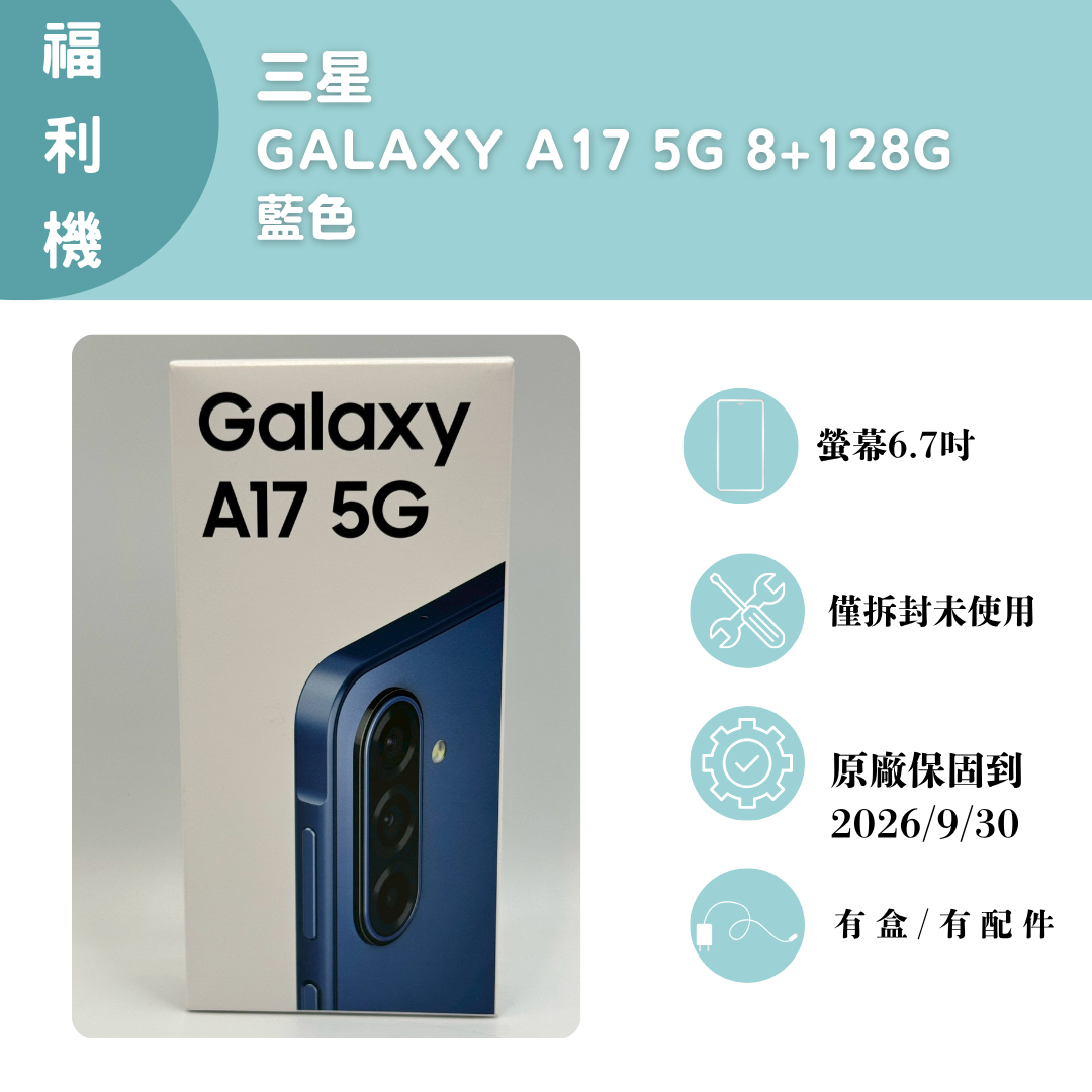 【手機名稱】 三星 A17 5G 【容量】8+128G 【顏色】藍色 【配件】有盒子/有配件 【電池】電池健康度100% 下單前請先私訊和加LINE來幫您安排快速審核及回報審核進度 LINE ID:@kjg6280d 大呼小叫辰通訊行 雲林縣虎尾鎮林森路二段200號 電話:05-6339809 在地經營12年店家 GOOGLE 評價5顆星