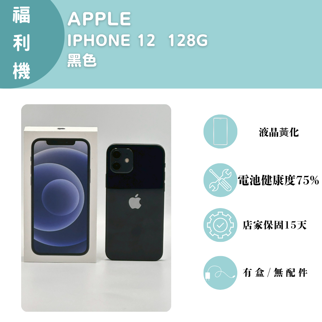 【手機名稱】 APPLE I12 【容量】128G 【顏色】黑色 【配件】有盒子/無配件 【電池】電池健康度75% 下單前請先私訊和加LINE來幫您安排快速審核及回報審核進度 LINE ID:@kjg6280d 大呼小叫辰通訊行 雲林縣虎尾鎮林森路二段200號 電話:05-6339809 在地經營12年店家 GOOGLE 評價5顆星