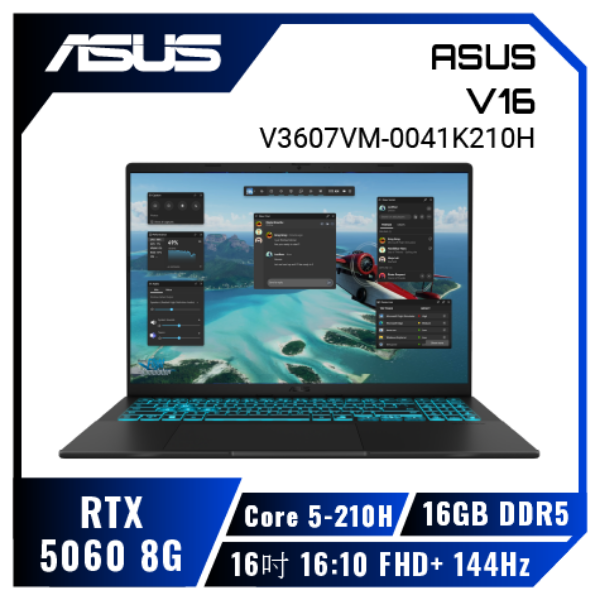 搭載最新RTX5060/Intel Core 5處理器 雙風扇/2散熱管/雙通風口 搭配IceCool散熱 最高搭載16:10 144Hz 2.5K IPS/89%屏佔比 藍光背光鍵盤搭配WASD+上下左右透明 PD充電/HDMI 2.1/軍規認證/180度開合 ASUS Audio Booster放大音量1.5X