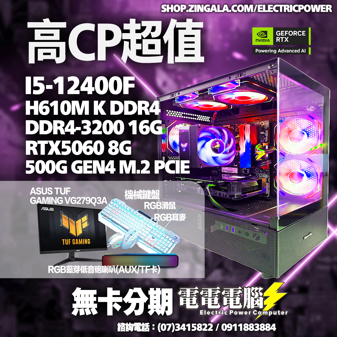 🔥 敢打、敢送、敢保固! 🎮 電競配備任你挑,價格公開透明! 👉 馬上看商品:https://shop.zingala.com/electricpower 💬 有問題?線上直接問:https://lin.ee/NWZCI6l 🧰 主機、筆電、螢幕通通有,裝備直接拉滿! 🚚 下單最快當天出貨! 🚛 黑貓、順豐宅配火速直送到你家! 🛠️ 壞掉不用怕,全台到府收件,維修不用你出門! 💳 支援所有主流付款方式,要刷卡、要分期隨你選! ➡ 銀角分期、BOBO PAY、月付大人分期,通通OK! ➡ 線上信用卡分期,完全沒問題! ➡ 線上付款或門市現場取貨,都超方便! 🏠 地址:高雄市左營區重愛路22巷6號 🕒 營業時間:週一至週五 11:00-20:30|週六 11:00-16:00|週日公休 📞 電話:(07) 341-5822 / 0911-883-884 📲 官方 LINE:@377fipfn