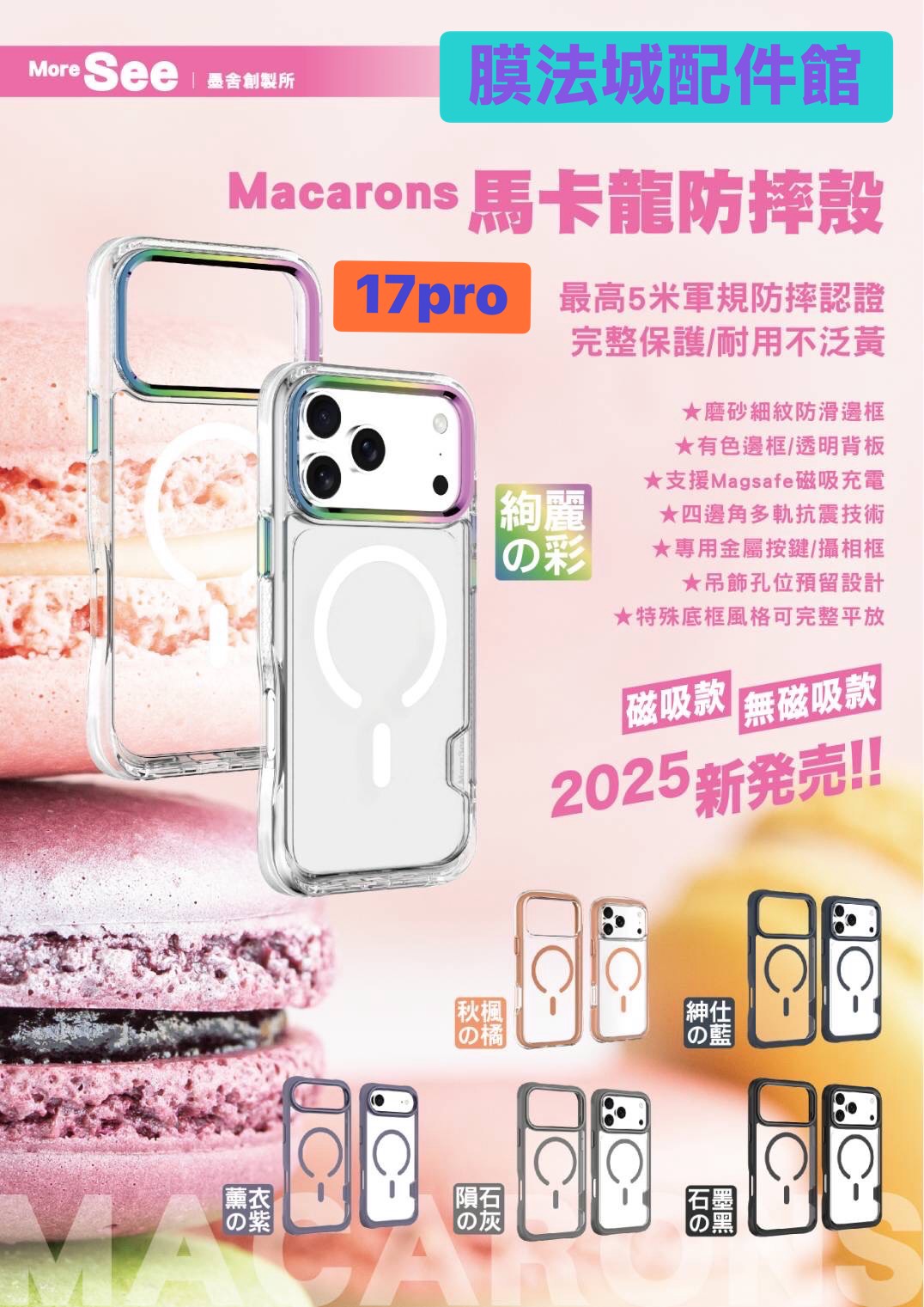 Macarons馬卡龍玩美17promax系列: 顏色: 絢麗の透彩(磁吸限定) 石墨の黑 紳士の藍 隕石の灰 秋楓の橘